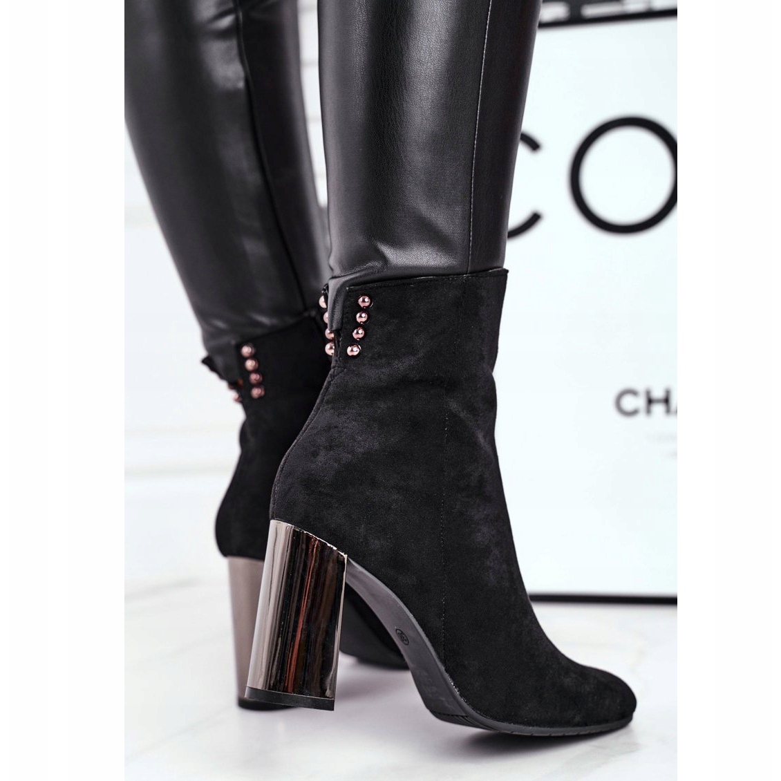 Med en övre höjd på 15,5 cm kommer dessa stövlar att framhäva dina ben perfekt, och deras eleganta svarta färg gör att de matchar perfekt med en mängd olika outfits: från jeans till luftiga klänningar. Det är också värt att uppmärksamma den fashionabla detaljen i form av strass, vilket ger dem lite karaktär.