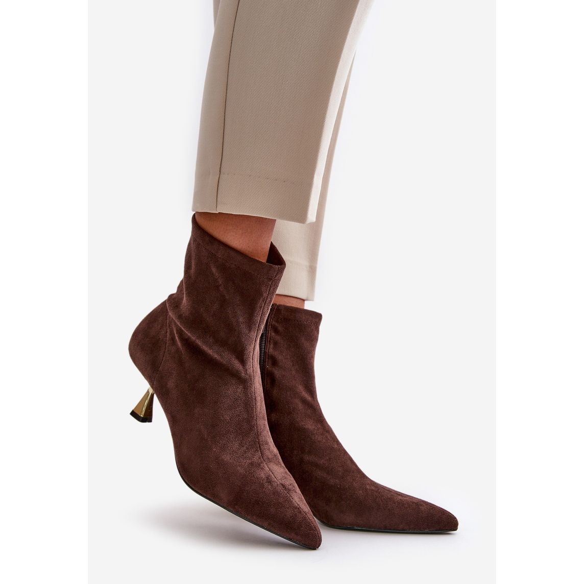 Information: Kvinnors stövlar på hög klack Eco mocka med spetsiga tår Brun Irithare