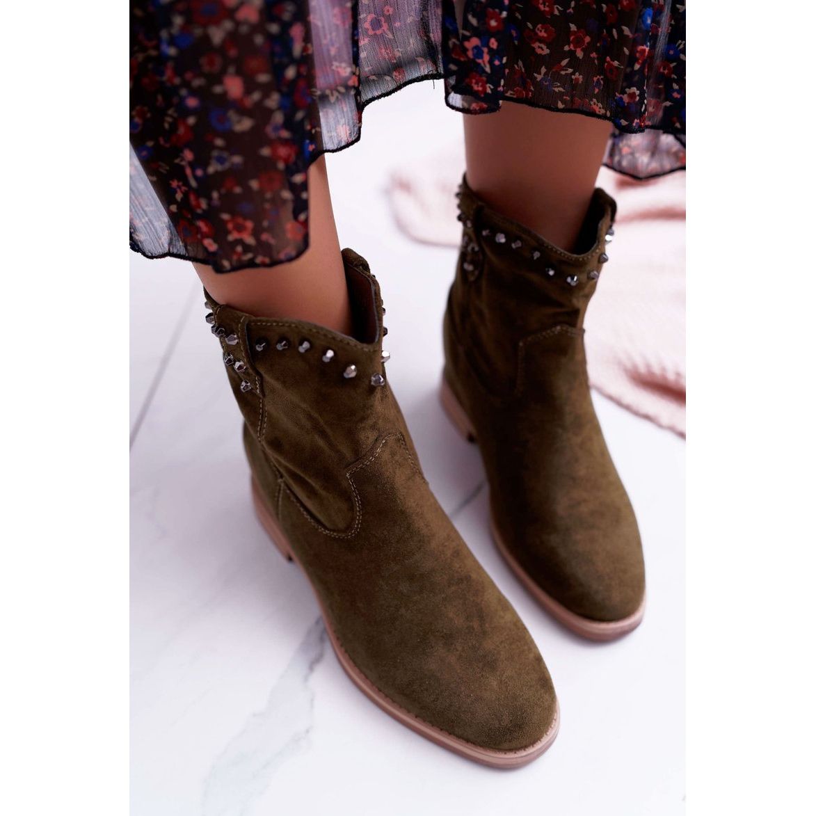 Detaljer: SEA Kvinnors stövlar på kil platt klack varm över fotleden Olive Deminis grön
