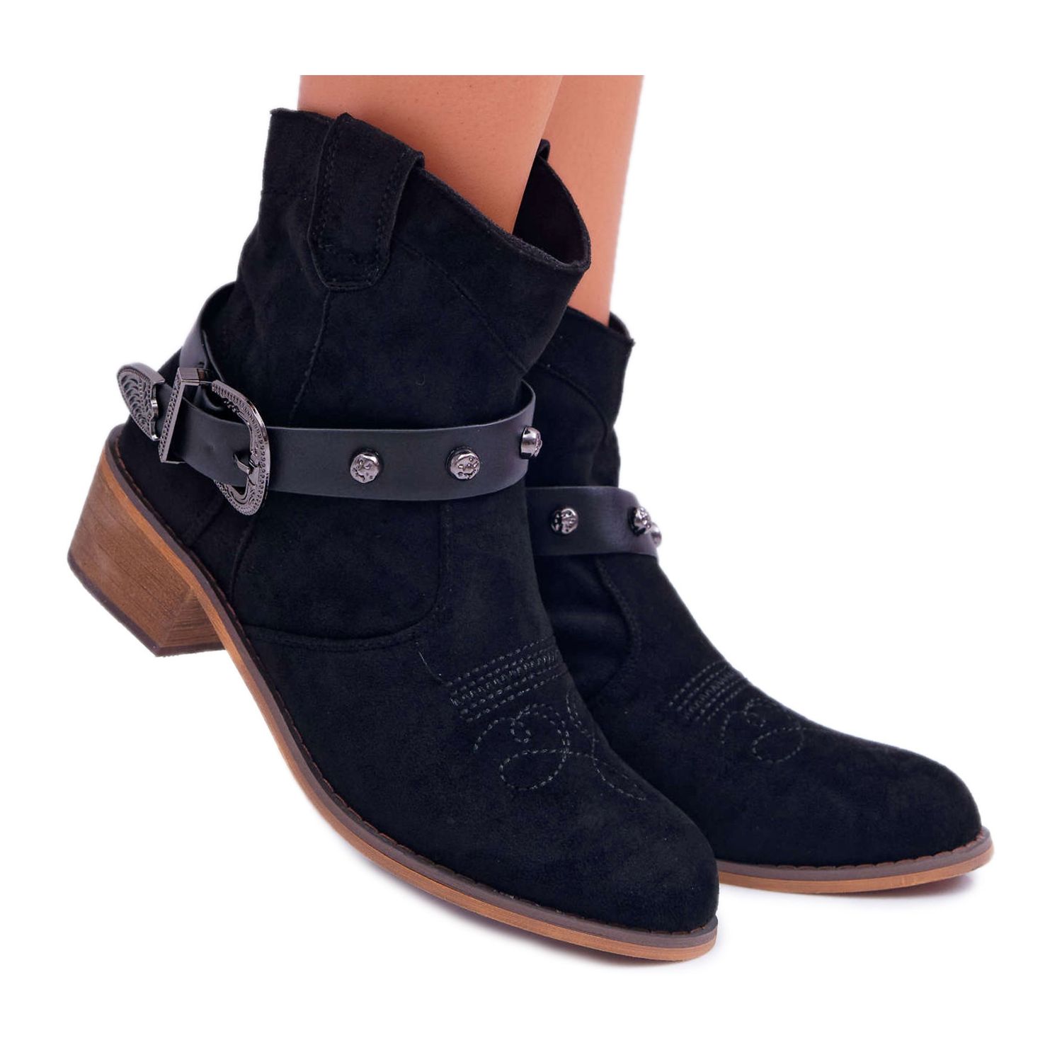 Deras karaktäristiska element är ett bälte dekorerat med ett guldspänne, vilket ger en touch av lyx och gör att du enkelt kan anpassa det efter dina önskemål. Dessutom har dessa stövlar en rundad tå, vilket garanterar komfort att bära, även under lång tid. Även om de inte är isolerade är de perfekta för övergångssäsonger.