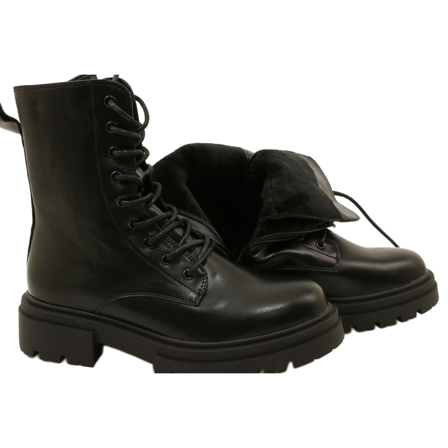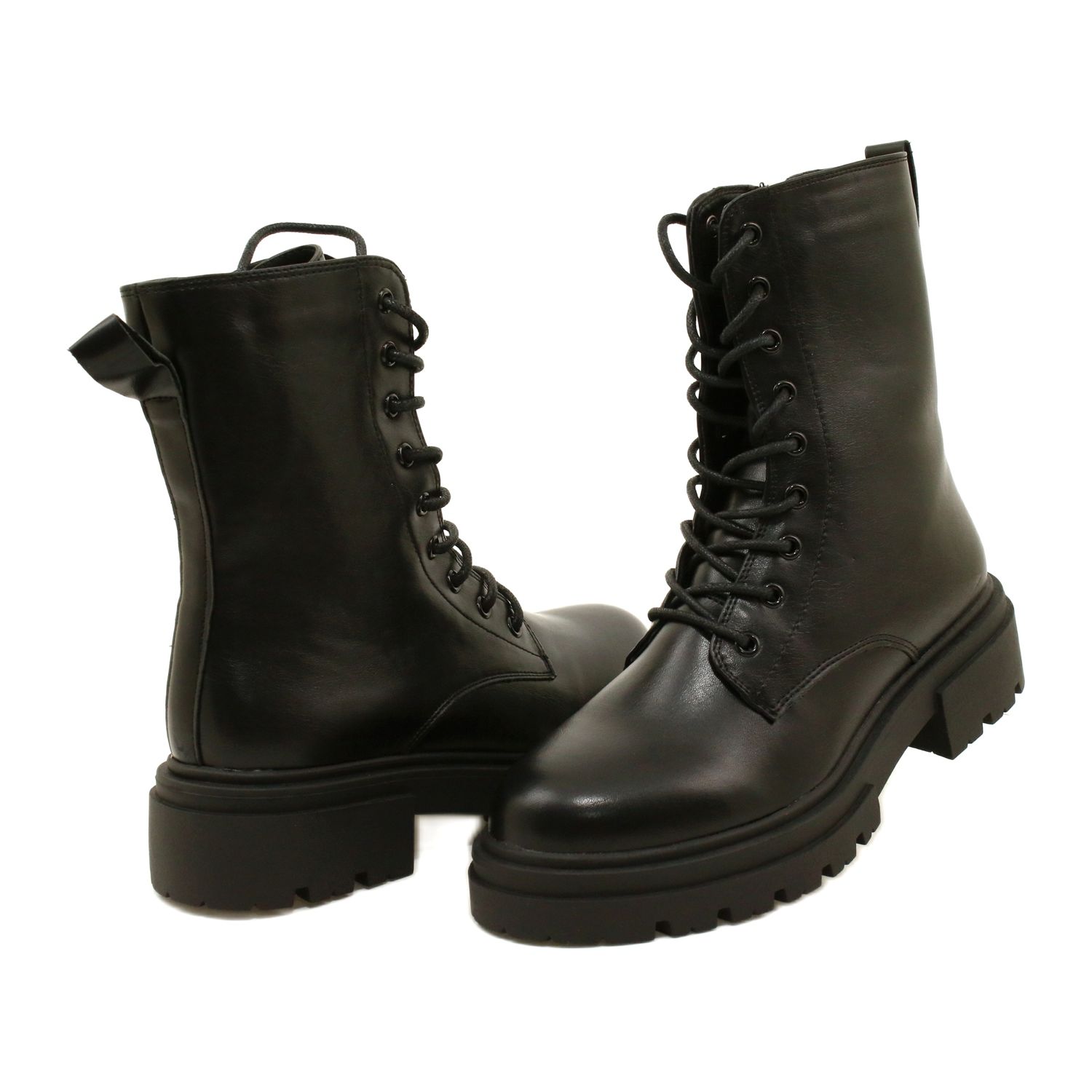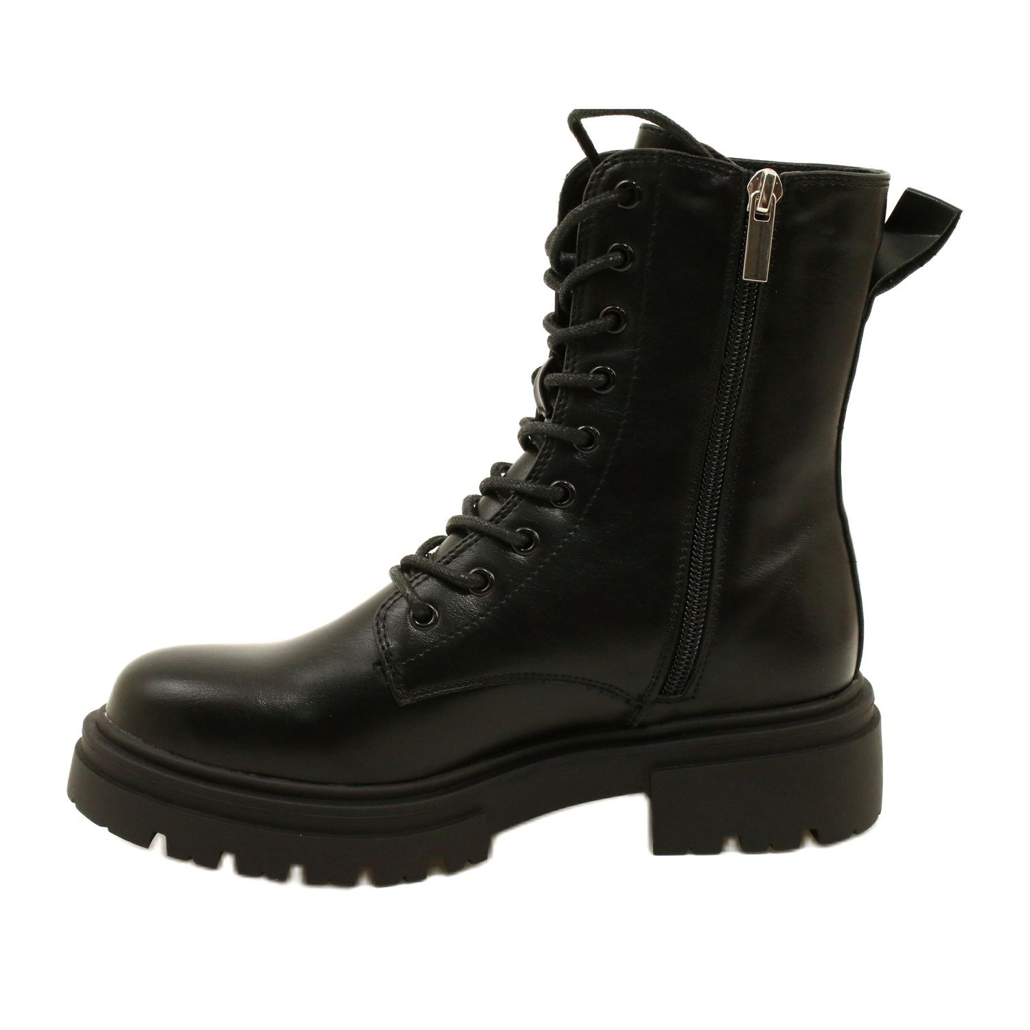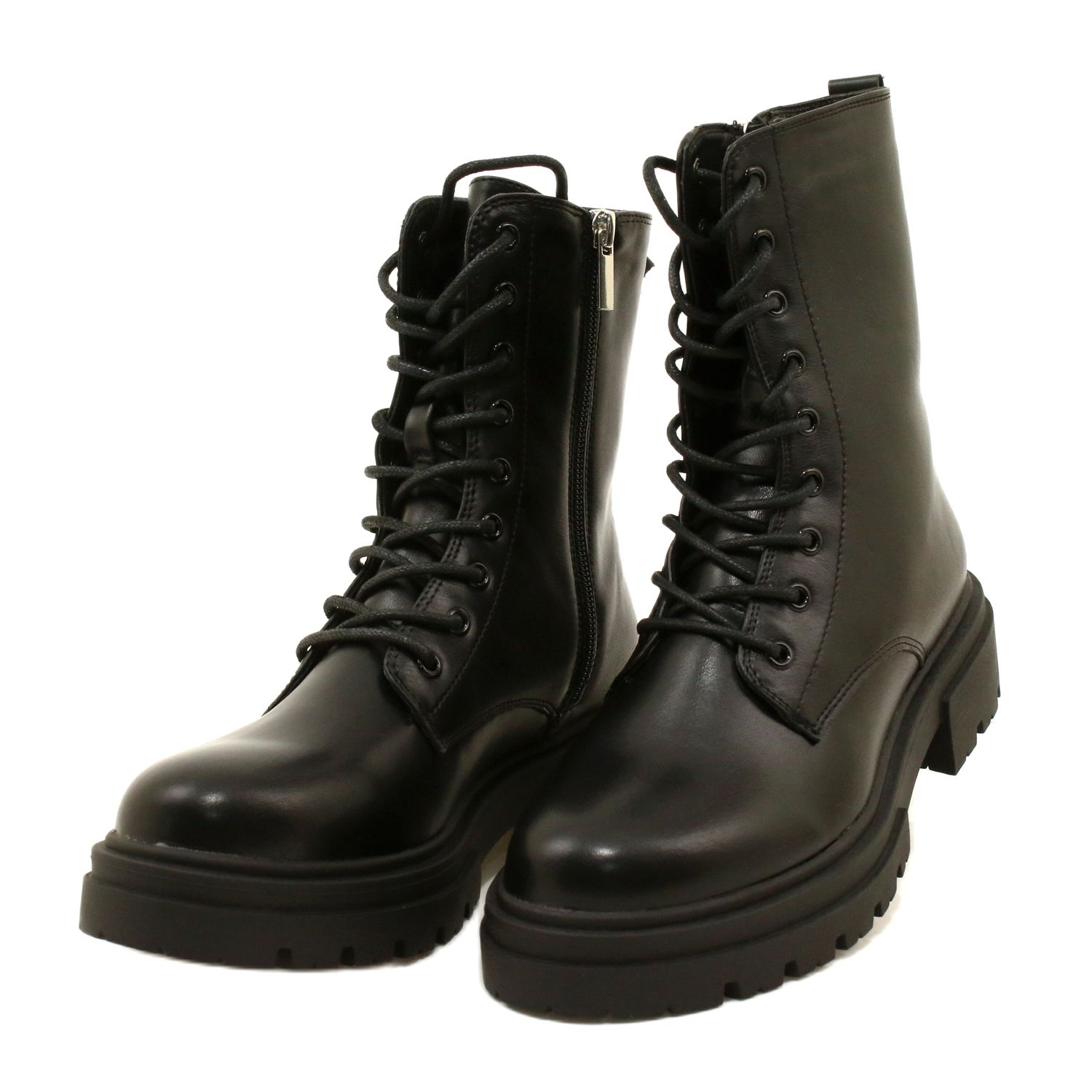 Glans / Women's Workers Evento 21bt35-4235-svarta stövlar som kombinerar stadsstil med praktiskt skydd för kalla dagar. Den höga övre (17,5 cm) stabiliserar vristen, och den klassiska snörningen i kombination med sidolåset garanterar en bekväm passform och snabb insättning.