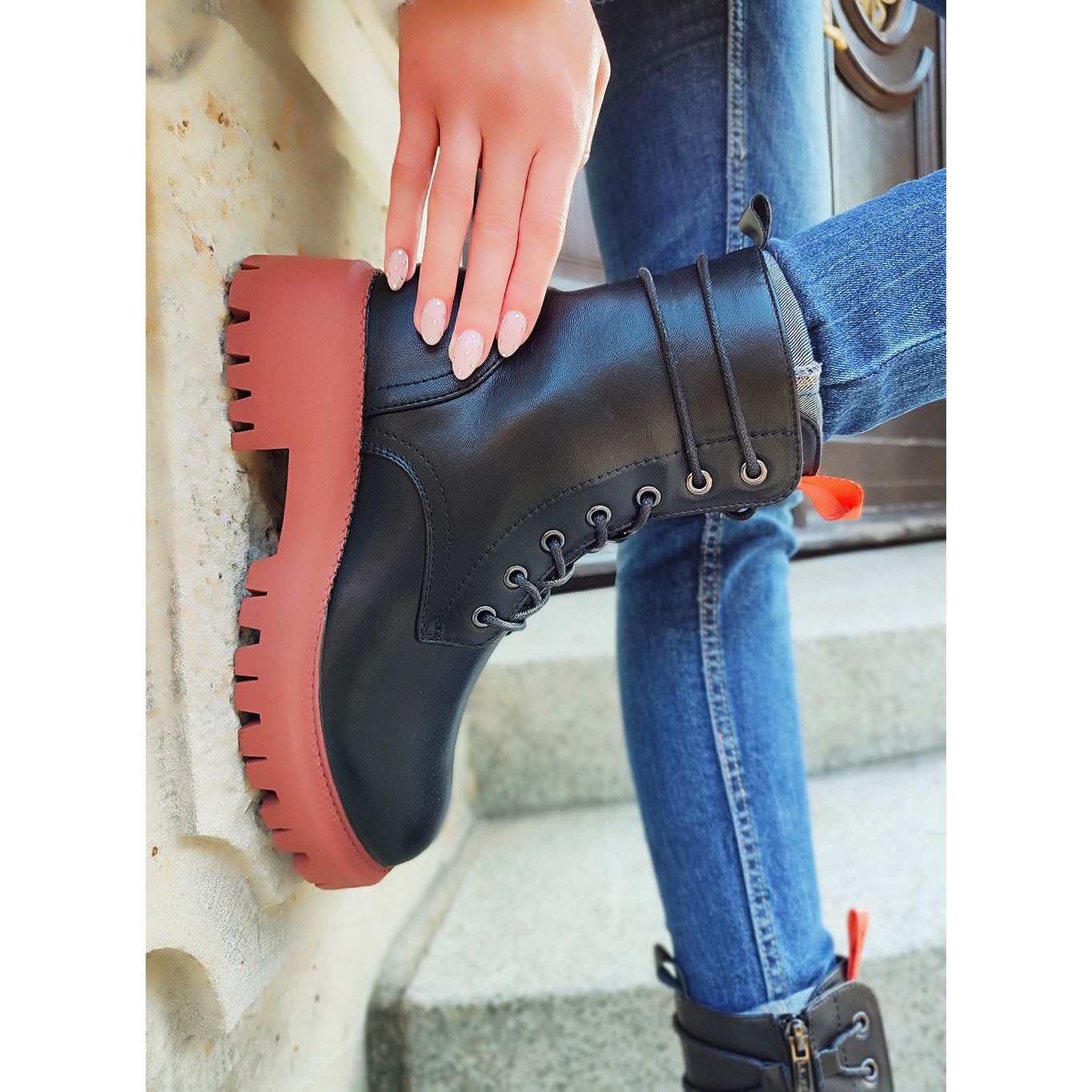 Den dominerande svarta färgen kombineras med ett subtilt färgtillskott, tack vare vilket arbetarna enkelt kan matchas till en mängd olika outfits, både avslappnade och mer vågade, redo för stadsutforskning. Runda tår och rejäl snörning tillsammans med en dragkedja i sidan säkerställer inte bara en bekväm passform, utan också lätt att ta på och av.