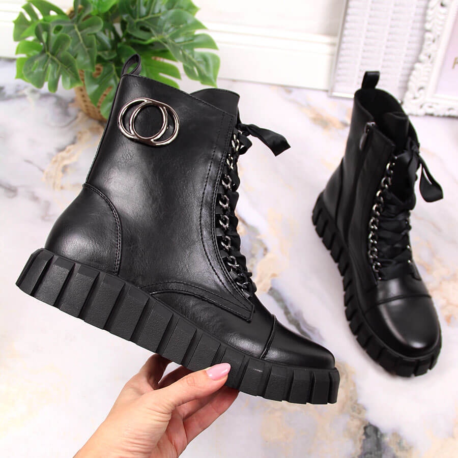 Denna modell kännetecknas av en klassisk, rund tå och en praktisk dragkedja och snörning, vilket gör den lätt att ta på och anpassa efter foten. Deras universella svarta färg gör att de matchar perfekt med olika stilar – från vardagsjeans till eleganta klänningar.