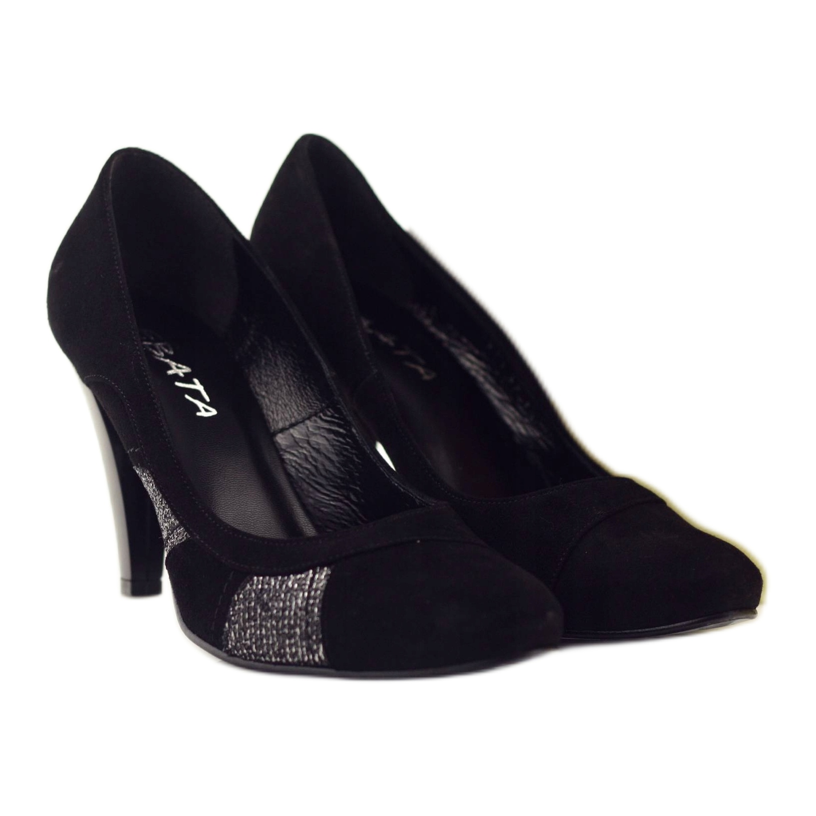 Detaljer: Edeo Kvinnors svarta läderpumpar med silvertråd