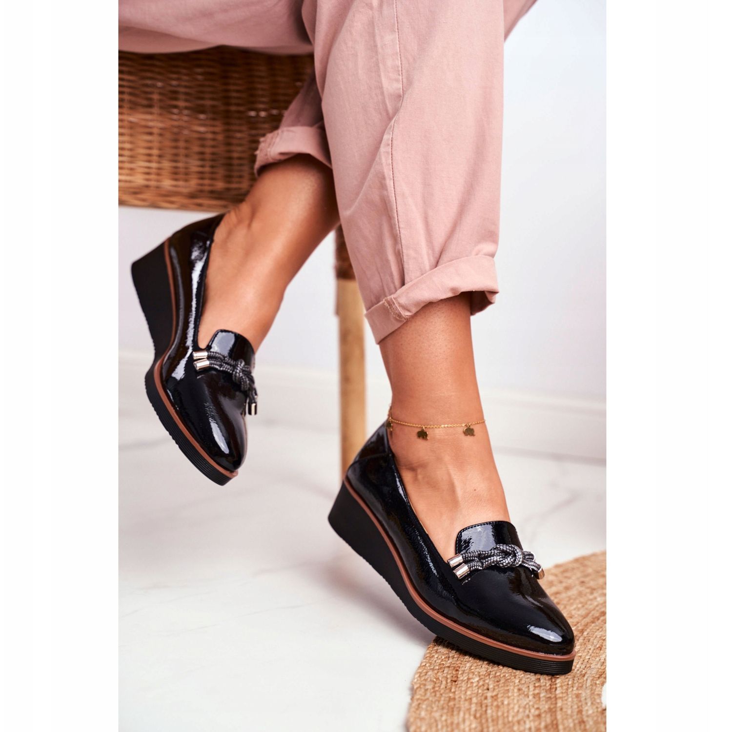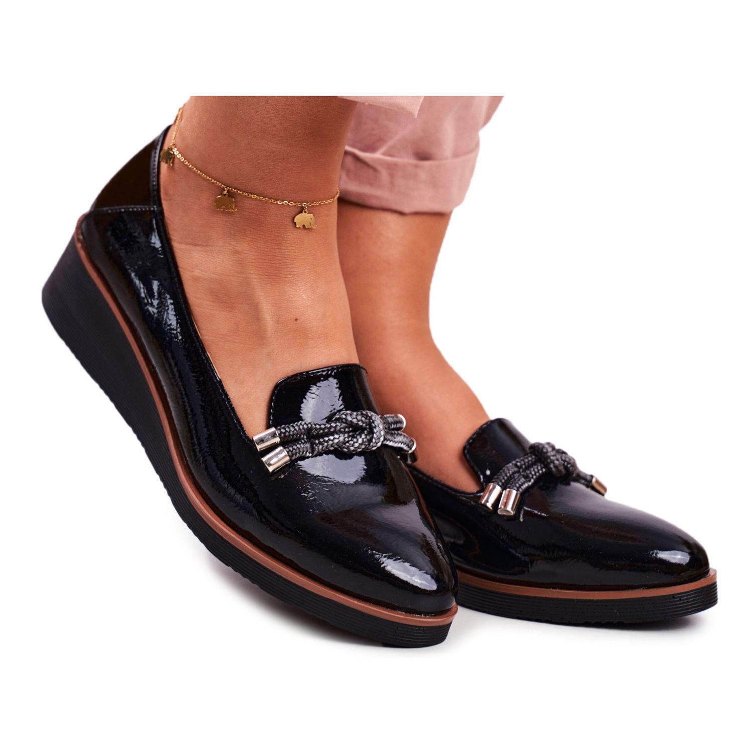Detaljer: Vinceza Kvinnors svarta mockasiner lackerade på Abba -kilen
