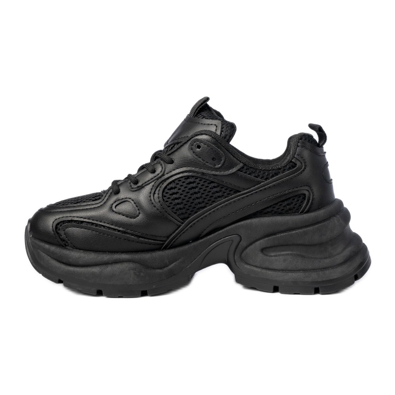 Kvinnors svarta sportsneakers är ett idealiskt förslag för kvinnor som letar efter både stil och bekvämlighet i vardagliga kläder. Dessa minimalistiska och uttrycksfulla skor, glädje med en enhetlig svart färg, som passar perfekt med olika stiliseringar.