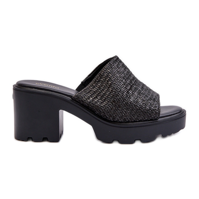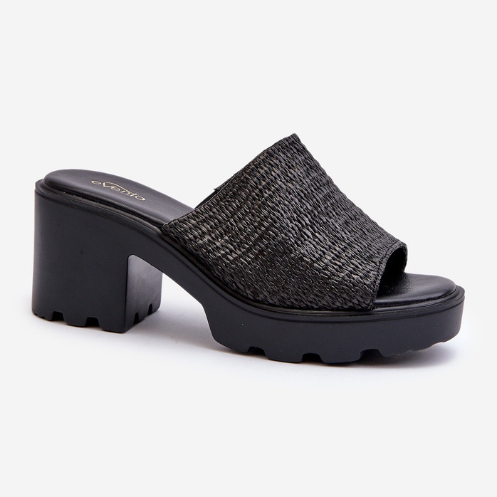 Detaljer: Kvinnors svarta Titantha flätade flip-flops med höga klackar