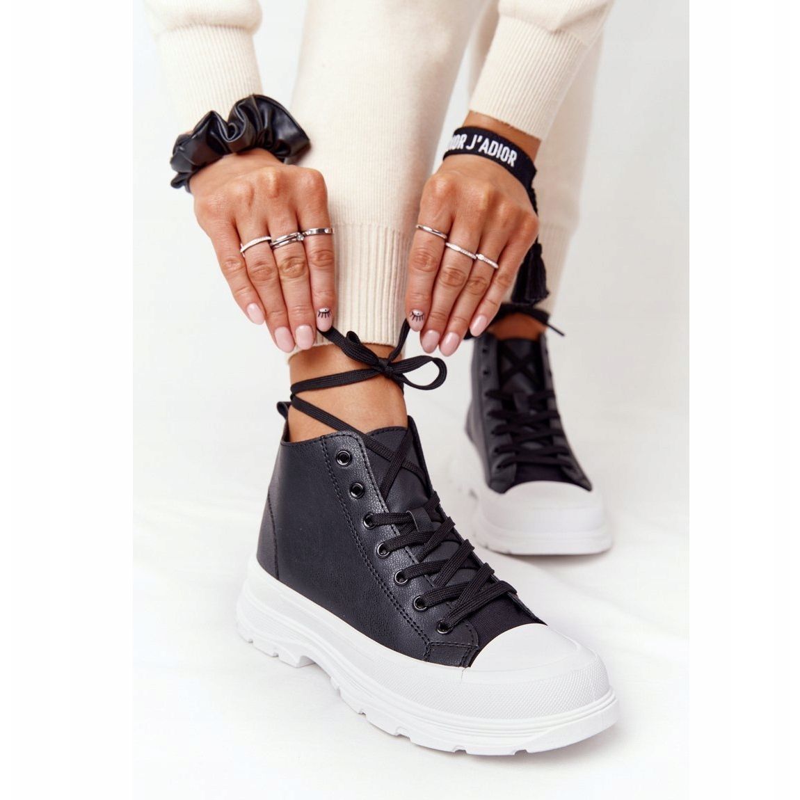 Information: Kvinnors svarta Trissy -läder -sneakers på stor sula