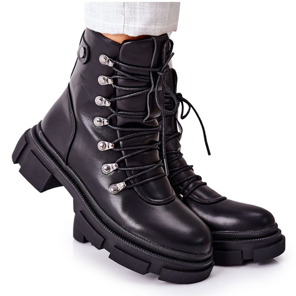 Tillverkade av högkvalitativt ekologiskt läder, garanterar de hållbarhet och enkel skötsel. Insidan av stövlarna är avslutad med en skofilt som är behaglig att röra vid som perfekt isolerar värmen, vilket säkerställer komforten för dina fötter. Dragkedjan på sidan möjliggör snabb och bekväm påslagning, och den rejäla snörningen möjliggör en perfekt passform till benen, vilket ökar stabiliteten och komforten att bära.