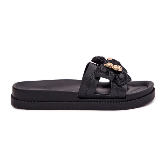 Information: Kvinnors tofflor med en båge och en gyllene brosch svart