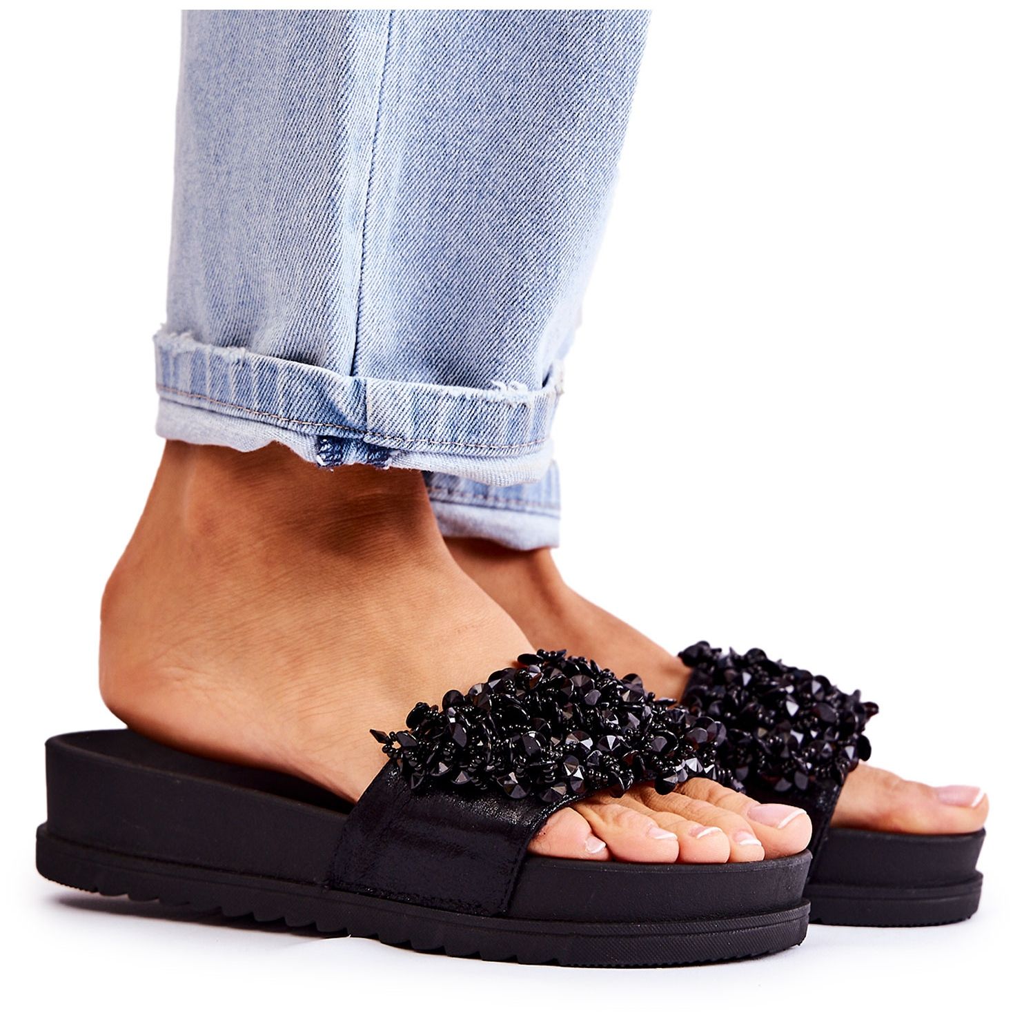 Detaljer: PG1 Kvinnors Tofflor På Plattformen Med Ornament Svart Almina