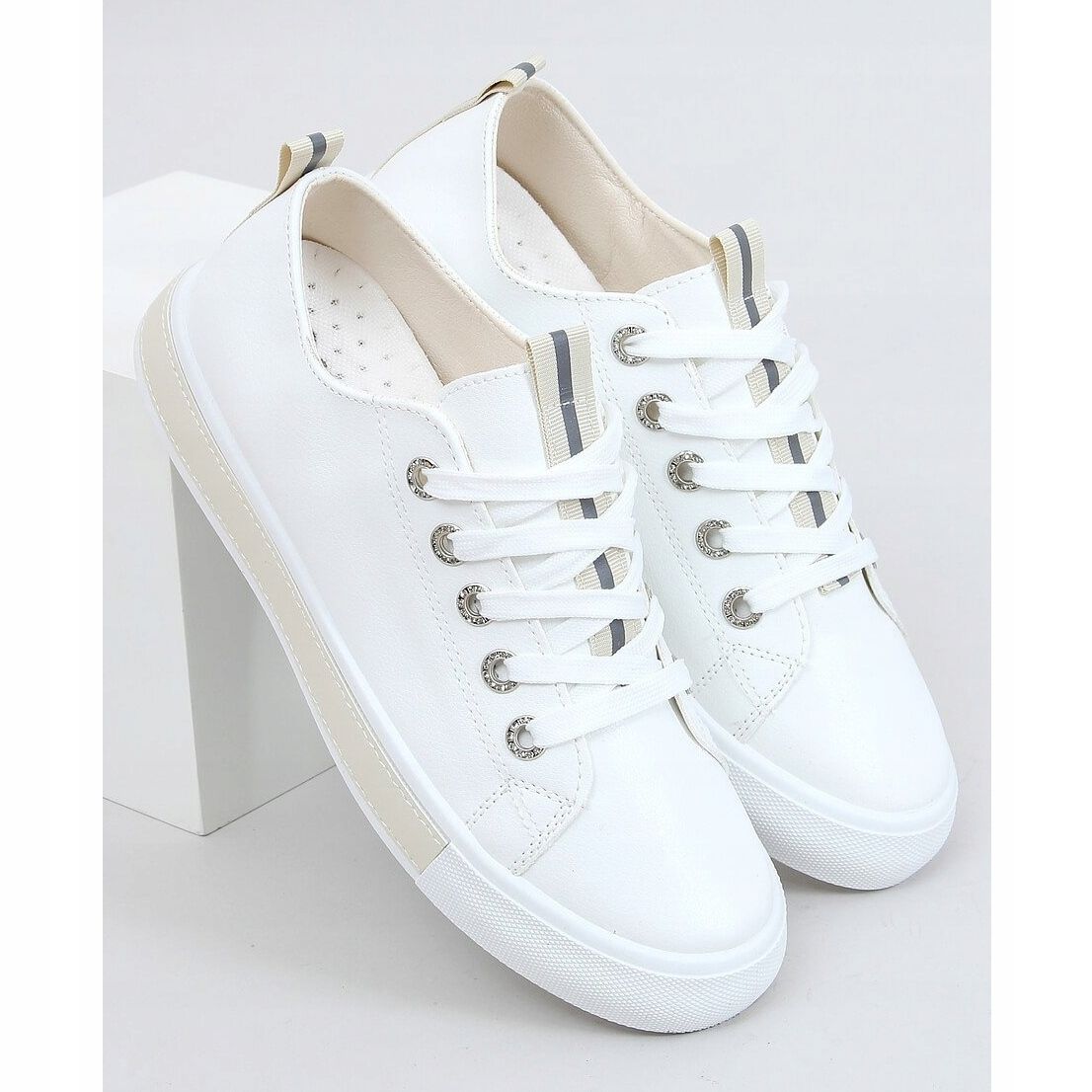 Detaljer: Kvinnors vita och beige sneakers A88-87 Beige