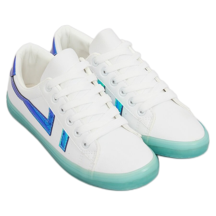 Detaljer: Kvinnors vita och gröna sneakers B0-08 WHITE / L.GREEN