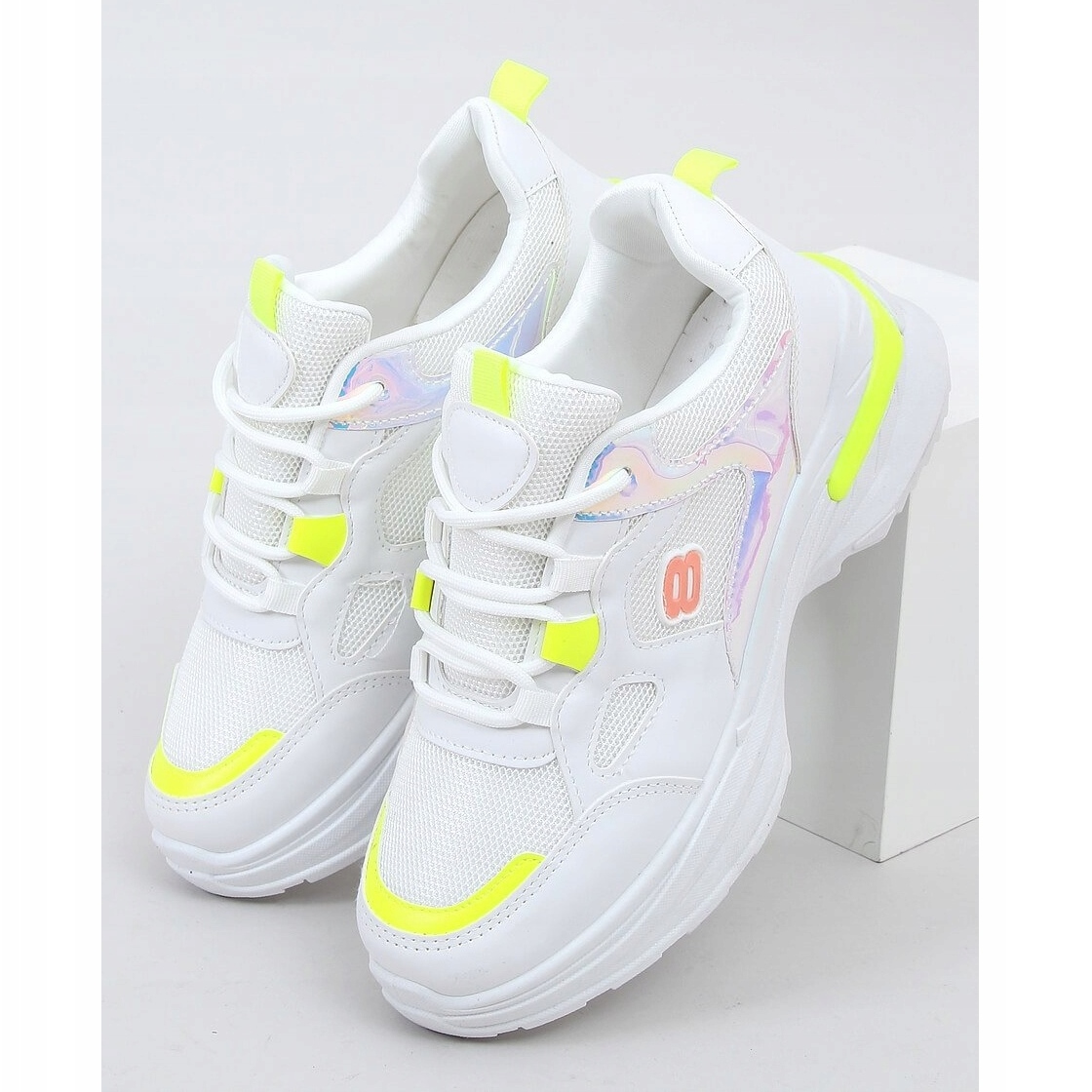 Upptäck mode och komfort i ett! HX-68 damsportskor i vitt och gult är ett förslag som säkerligen kommer att dra till sig uppmärksamhet. Tack vare den höga sulan som optiskt förlänger dina ben får du inte bara en stilren look, utan även några centimeter till! Denna modell kännetecknas av holografiska tillbehör som ger den en unik karaktär.