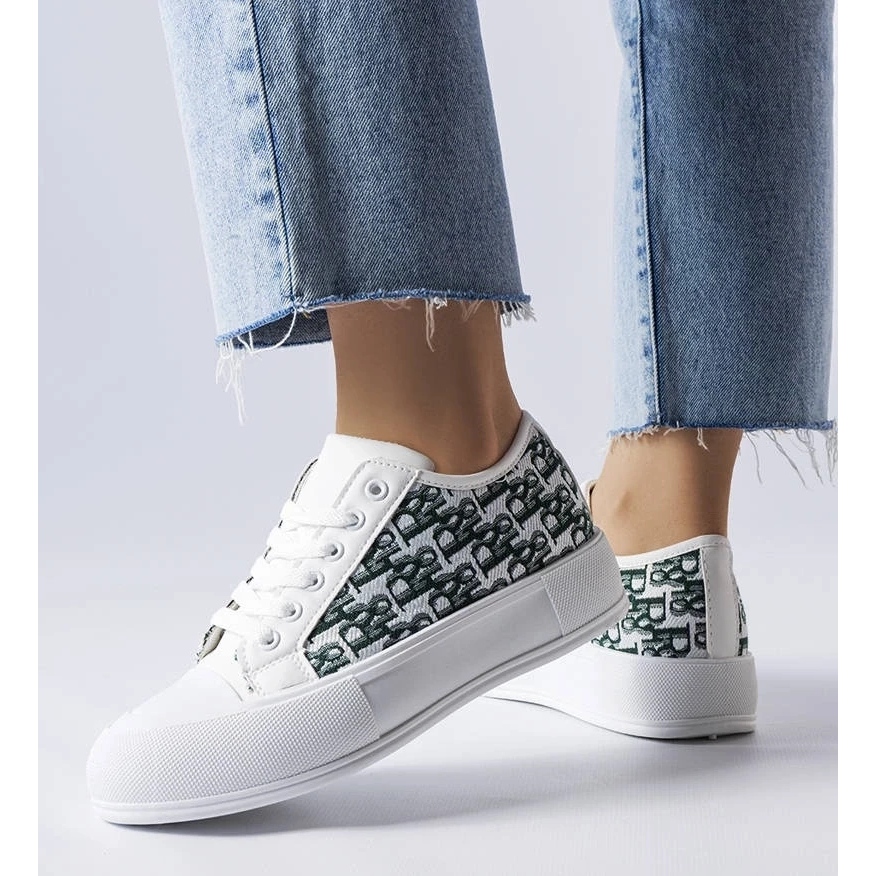 Detaljer: D/GMR Kvinnors vita snörda sneakers med ett fashionabelt markeringsmönster
