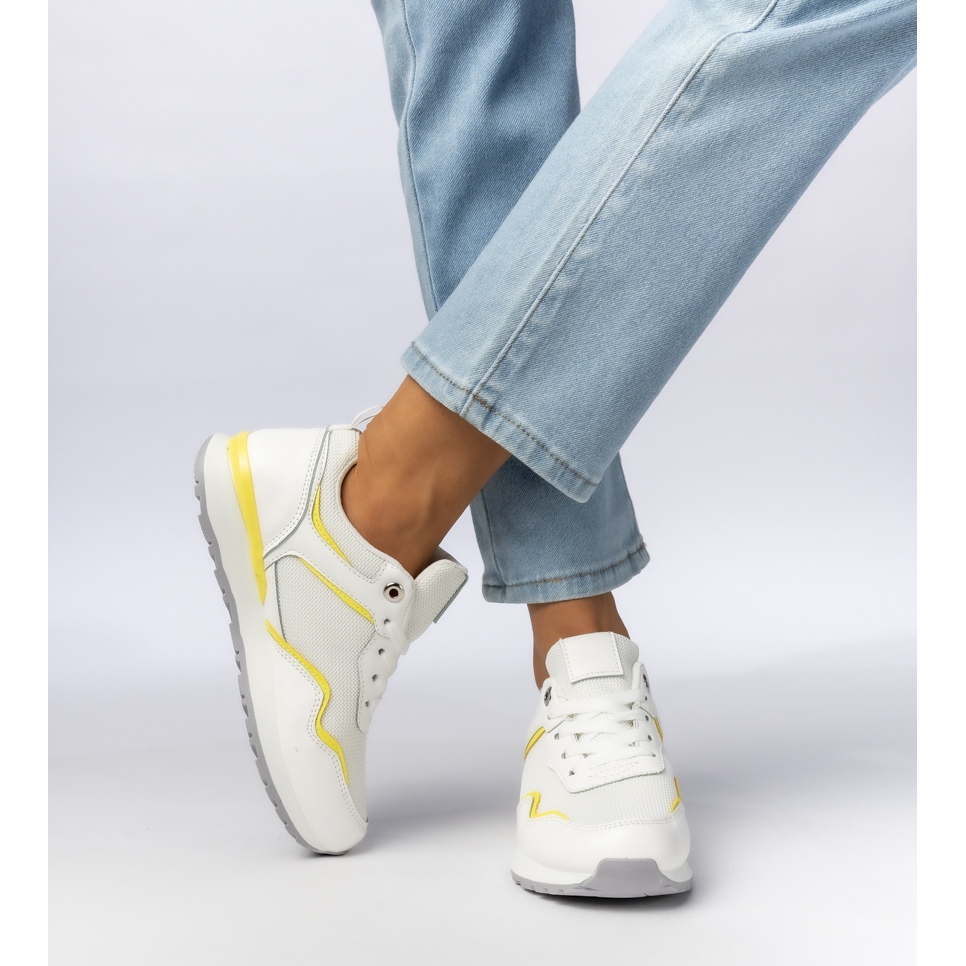 Grekiska med en ny dimension av komfort och stil tack vare våra kvinnors sportsneakers i vitt. Dessa lätta och bekväma skor är det perfekta valet för kvinnor som värderar både fashionabla utseende och funktionalitet. Den vita överdelen, tillverkad av högkvalitativt tyg och ekologiskt läder, skapar en effektiv duo med subtila, gula detaljer som ger skor en modern och dynamisk karaktär.
