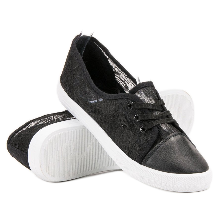 Mckeylor sneakers med låg spets i svart är ett absolut måste i garderoben för varje moderiktig kvinna! Dessa charmiga skor kombinerar komfort och unik stil, vilket gör dem till det perfekta valet för dagligt bruk. Tack vare spetsmaterialet skiljer sig sneakers från vanliga modeller, vilket ger varje styling en flickaktig och elegant karaktär.