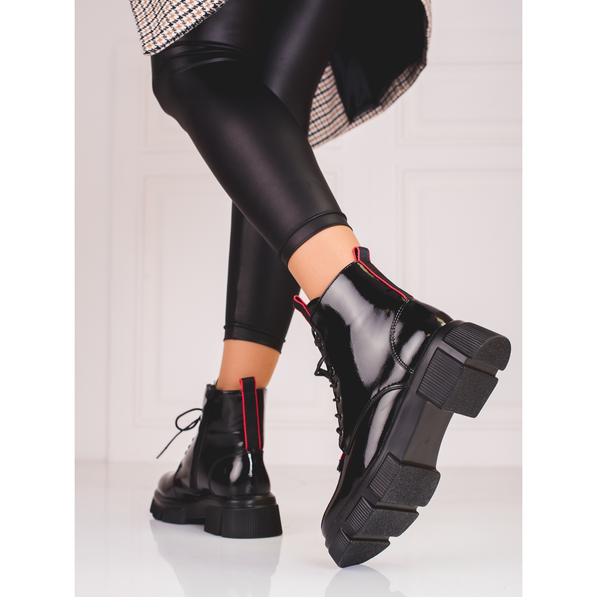 Detaljer: Laced Dam Shelovet ljuslackade stövlar svart