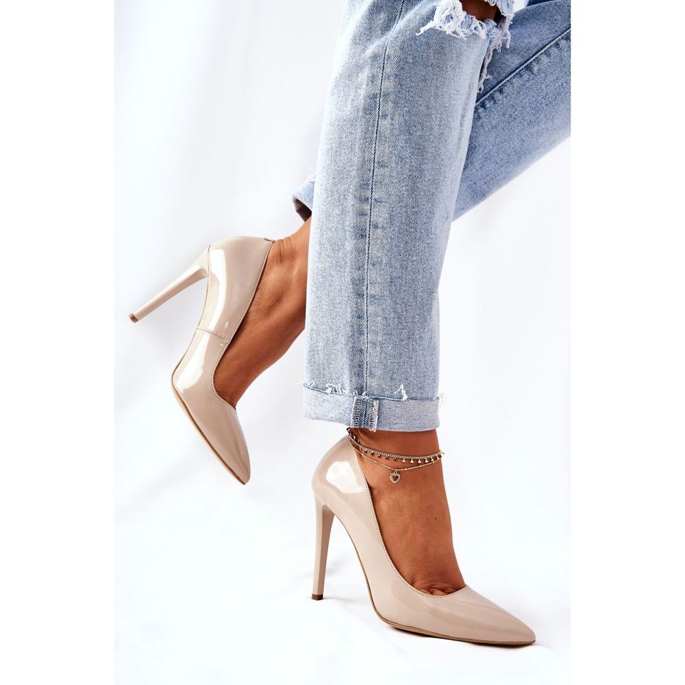 Den beiga färgen på dessa höga klackar gör dem extremt universella och anpassar sig lätt till olika stilar - från eleganta klänningar, genom kjolar, till byxor. Dessutom ger den lackade finishen dem en unik glans som väcker uppmärksamhet.