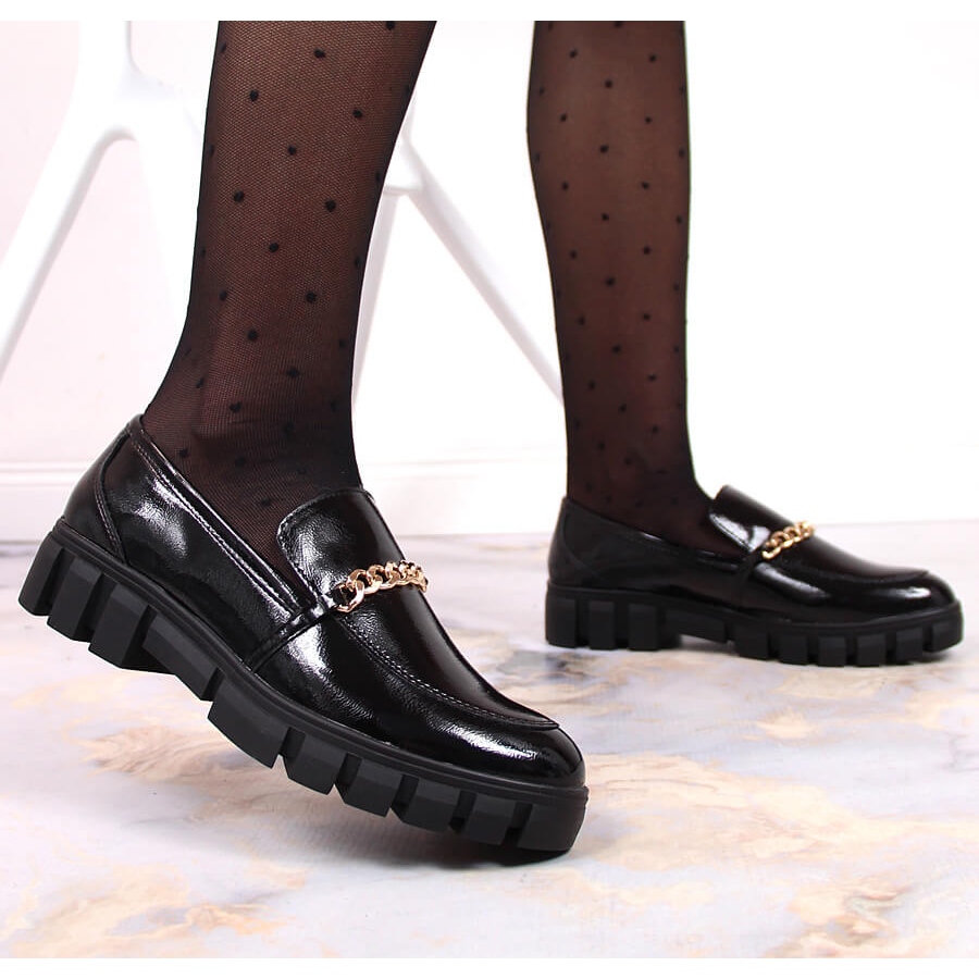 - Modell: Lackade loafers med kedja