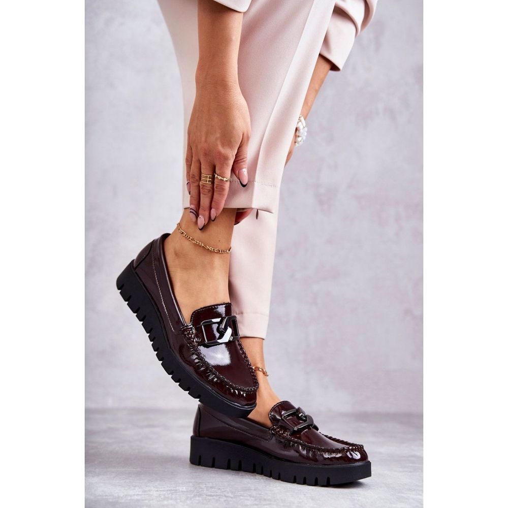 Eleganta loaffs, som kombinerar klassiker med en modern, massiv accent. Målat organiskt läder ger dem en snygg karaktär, och den dekorativa kedjan betonar subtilt stilen. Den fasta, tydligt snidade sulan på plattformen (3,5 cm) ger komfort och fashionabelt utseende under dagen - perfekt för kontoret och varje dag.