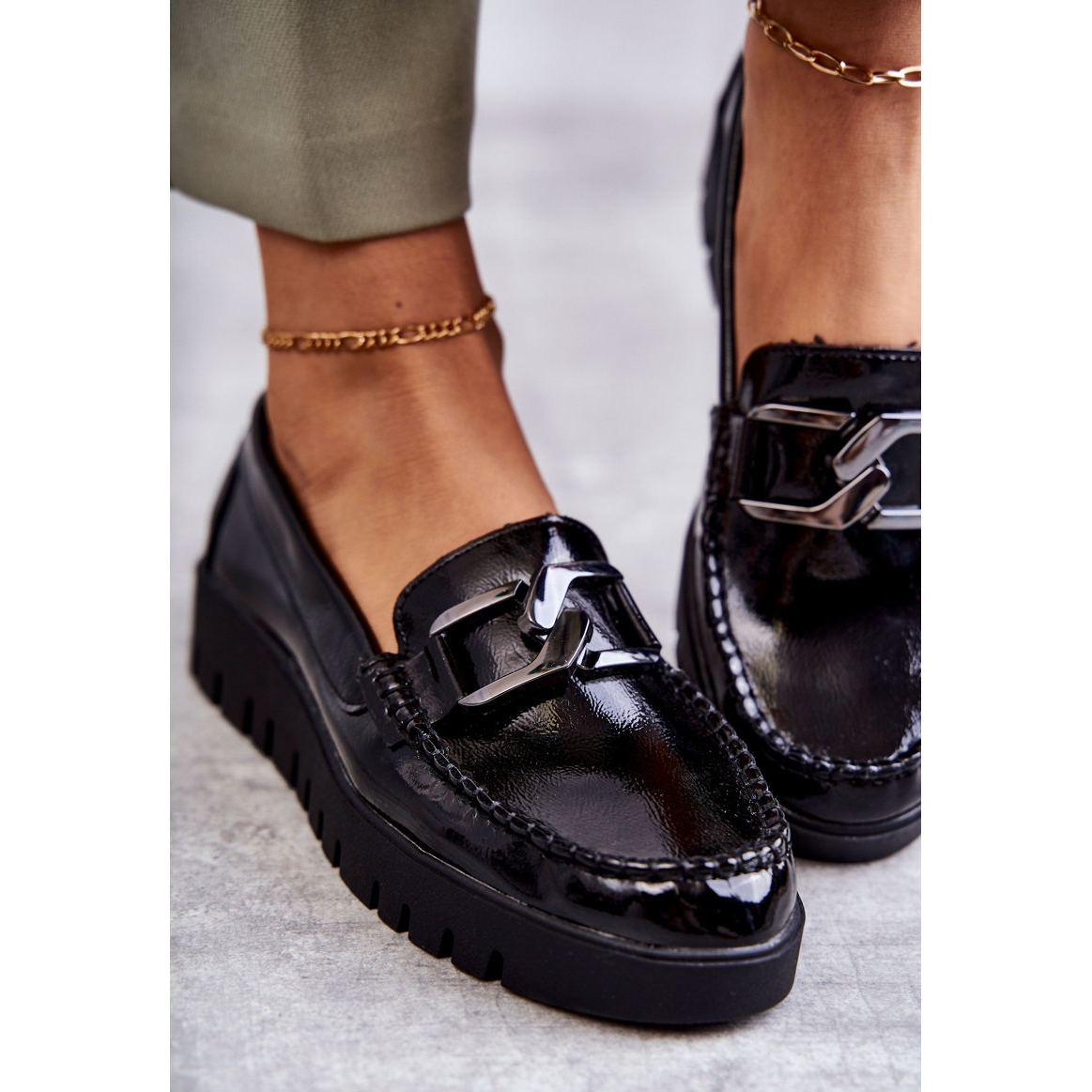 - Modell: Lackade Loafers På Plattformen