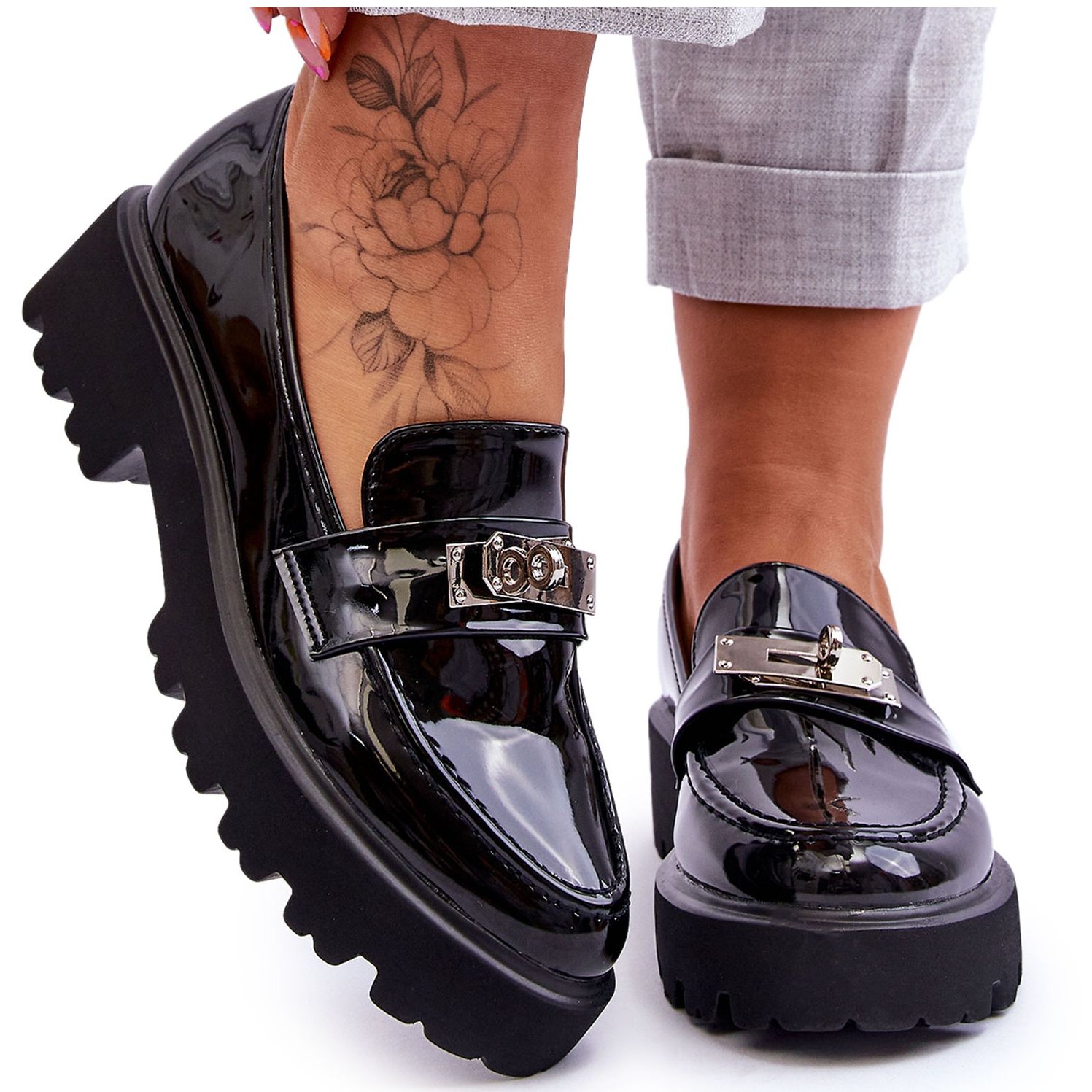 Fantastisk design och komfort i varje tum - det här är FJ1 patentlädermockasiner med dekoration på Black Glory-plattformen. Dessa skor är designade för kvinnor som vill kombinera en elegant look med komfort hela dagen. Varje element har noggrant designats för att möta förväntningarna hos de mest krävande användarna.