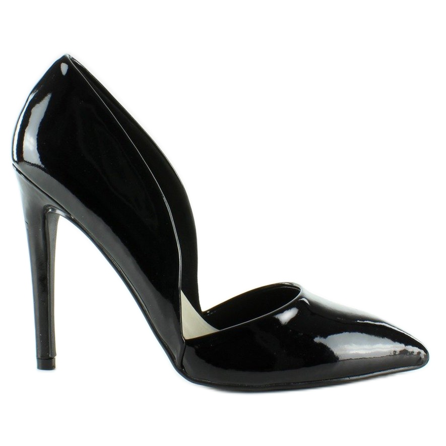 Upptäck elegans och unik stil med lackpumps med fördjupningar EE05 Black! Dessa bländande svarta stilettpumps är det perfekta valet för kvinnor som vill lägga till elegans och klass till sin look. Originalsnittet med ömtåliga utskärningar på sidorna förlänger effektivt foten och framhäver dess välformade form. Dessutom ger smala mandelformade tår en unik karaktär till skorna.
