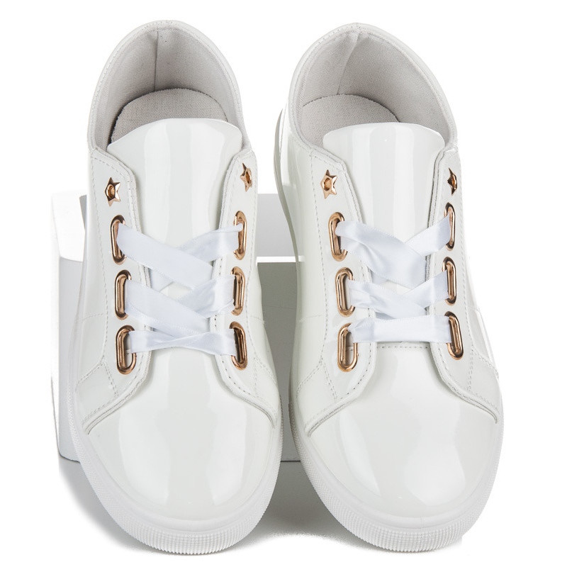 Detaljer: Ideal Shoes Lackade Sneakers Med Ett Band vit