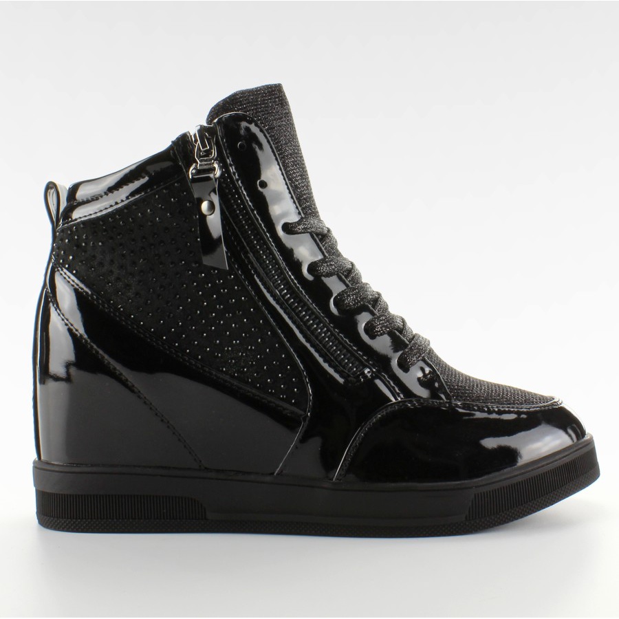 Eleganta och bekväma damsneakers med en dold kil (7,5 cm), som kommer att framhäva figuren utan att ge avkall på komforten. Modellen kombinerar tre materialstrukturer och subtil dekoration med små stenar, tack vare vilka den ser imponerande ut både på daglig basis och i mer formella stilar. Lätt konstruktion och rejäl snörning säkerställer en stabil passform mot foten.
