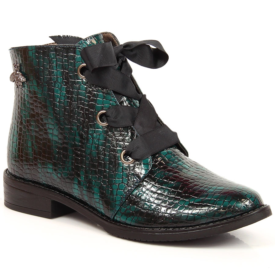 Information: M. DASZYŃSKI Lackade stövlar för kvinnor isolerade krokogröna Daszyński SAN5B