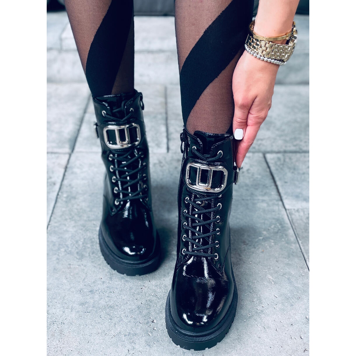 Mila PATENT (SVART) patentkängor är ett perfekt val för fashionabla kvinnor som värdesätter stil kombinerat med komfort. Dessa eleganta arbetarskor med hög sula utmärks av sin klassiska design och den mest fashionabla lackerade finishen, vilket ger dem en unik karaktär. En iögonfallande silverdetalj i form av en dekoration tillför chic till det hela och garanterar WOW-effekten varje dag!