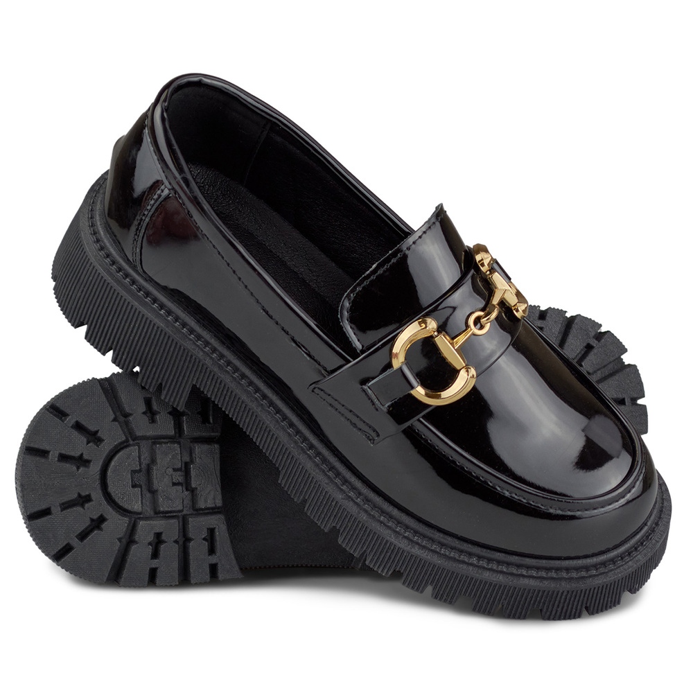 Detaljer: Lackade svarta dam loafers med dekoration