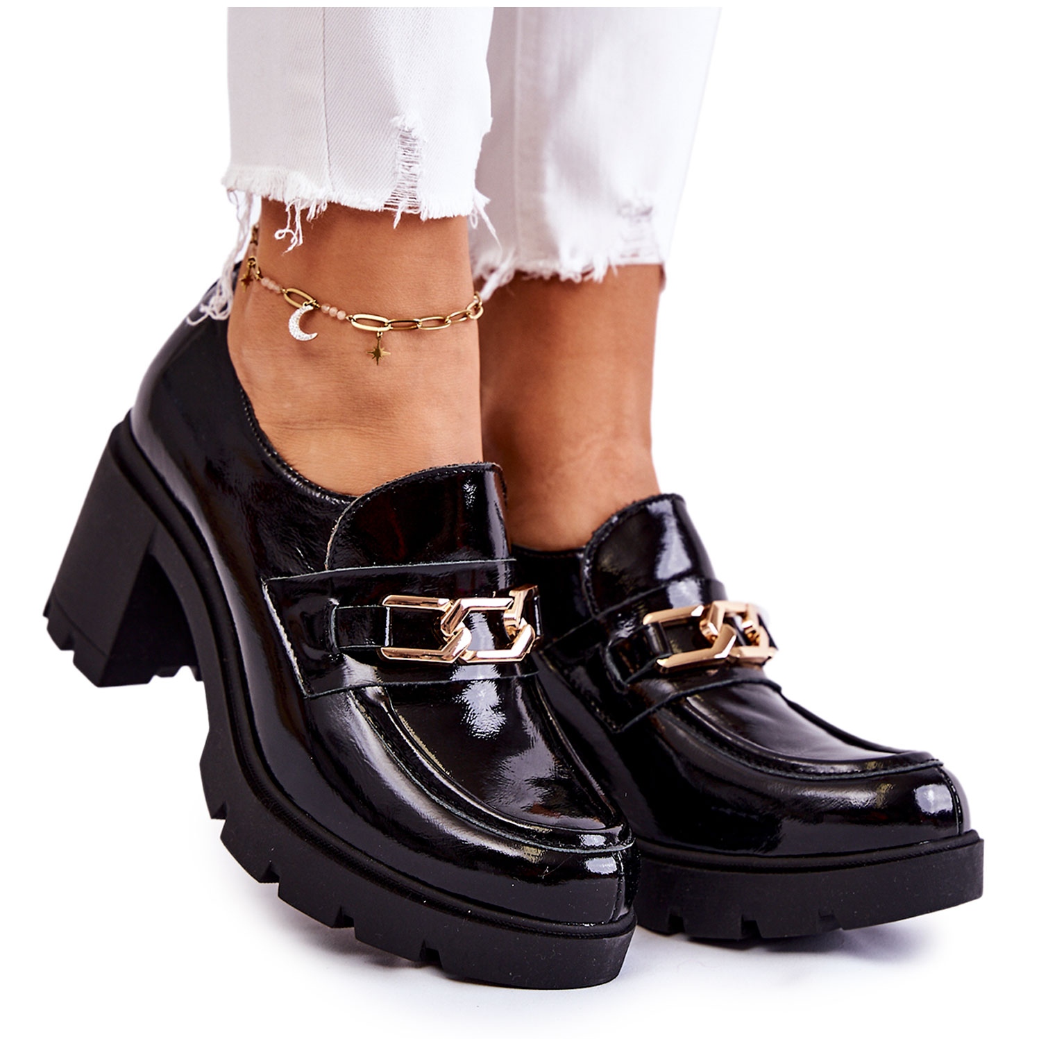 PL5 PL5 Lackade svarta skor på en pelare med guldprydnad Mikeyla