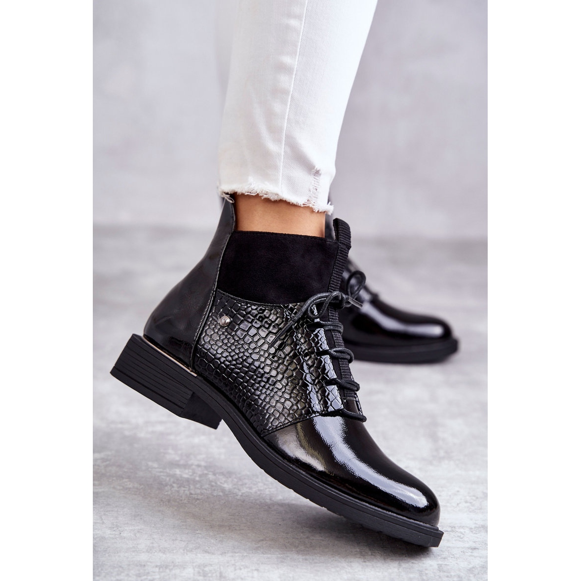 - Modell: Lackade varma snörstövlar