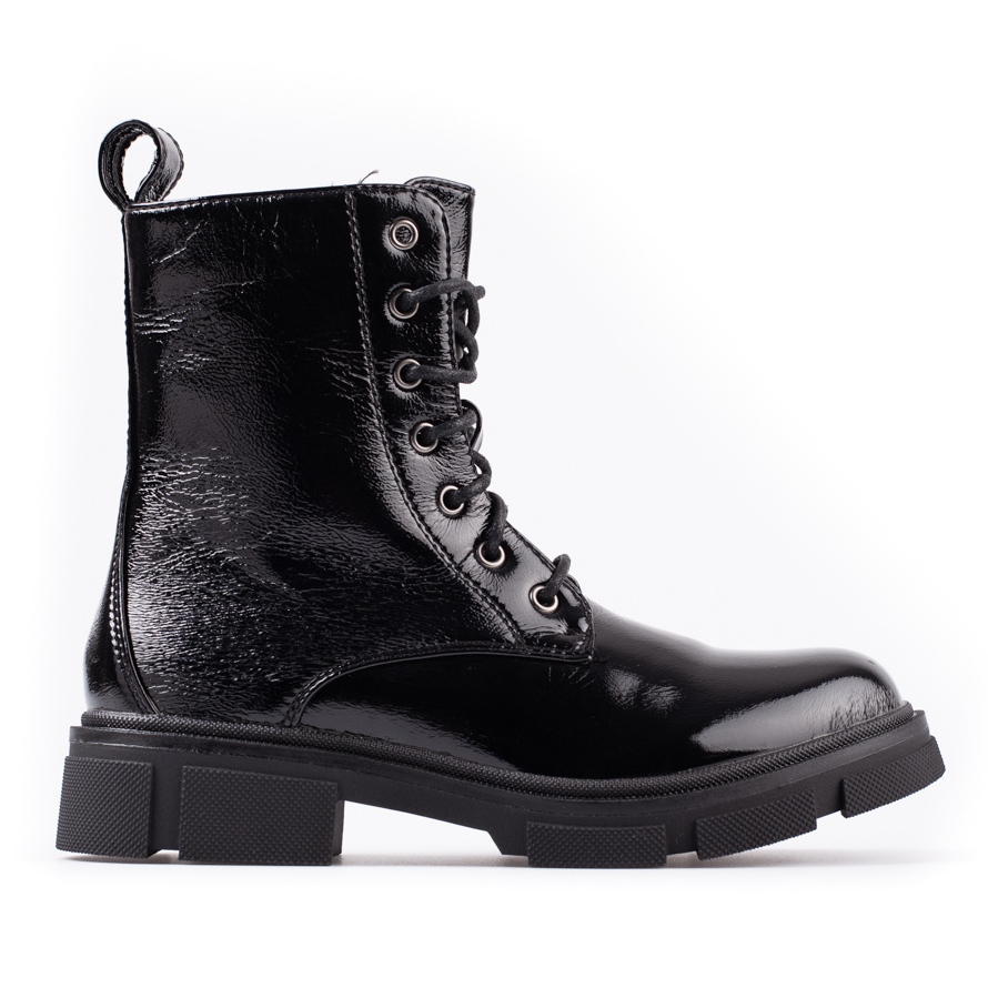 Upptäck stilen och komforten hos Marquiz-arbetare i en fashionabel svartlackerad finish. Dessa ankelstövlar för kvinnor kombinerar en avslappnad look med funktionalitet, vilket gör dem perfekta för vardagsbruk, speciellt under höst/vintersäsongen.