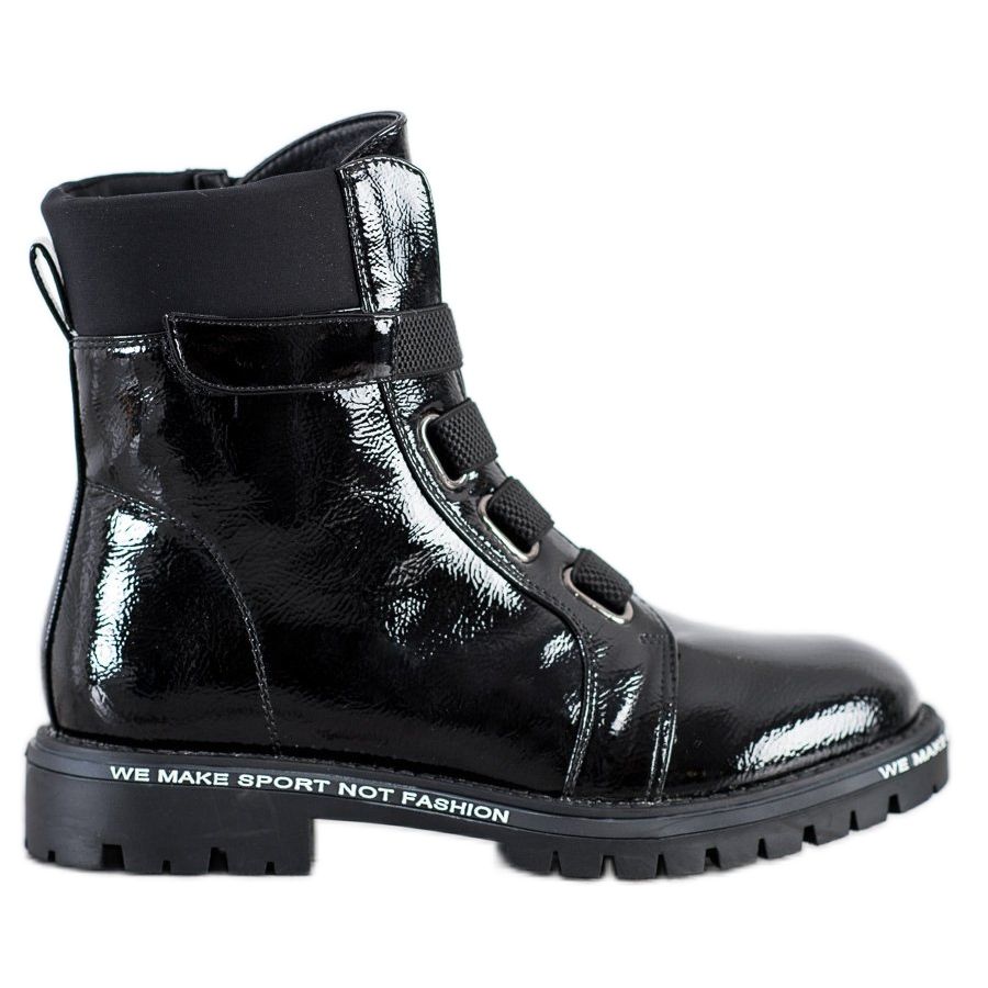 Arbetare är gjorda av högkvalitativt ekologiskt läder, vilket ger dem en elegant patenteffekt. Insidan av skorna är isolerad, vilket gör dem till ett utmärkt val för kallare dagar. Den ankellånga övre och runda tån säkerställer komfort och rörelsefrihet.