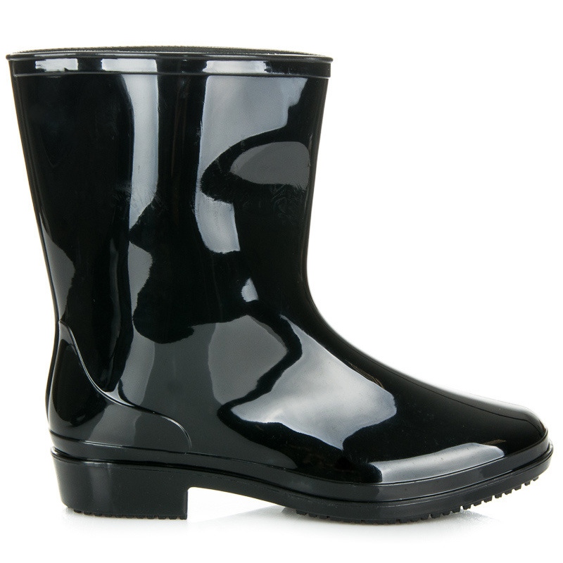 Gummorna är gjorda av högkvalitativt gummi, som inte bara ger skydd mot fukt, utan också motståndskraft mot olika väderförhållanden. Deras moderna utseende bestäms av den lackerade finishen, som tillför elegans. Den universella svarta färgen gör att gummistövlarna passar perfekt med olika stilar.