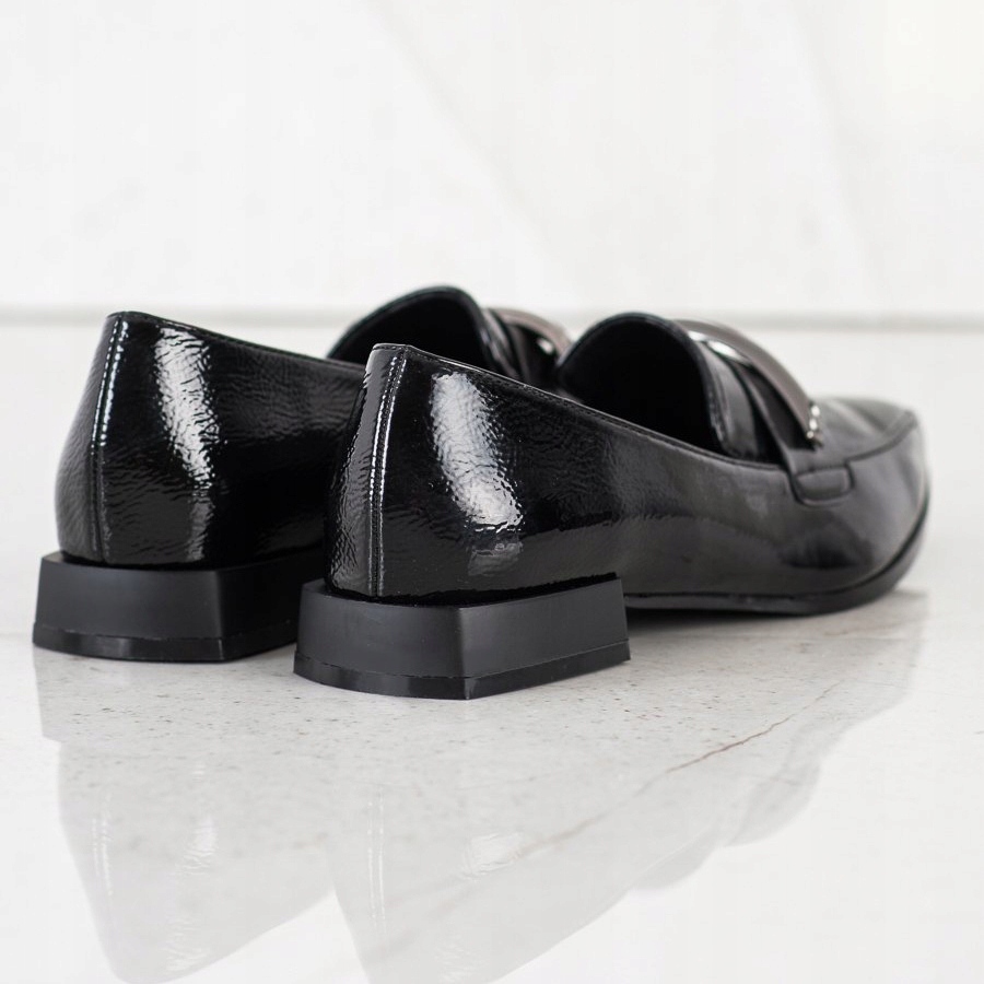 Vi presenterar eleganta spetsiga mockasiner från det välkända märket S. Barski, som kommer att vara det perfekta komplementet till varje styling. Dessa underbara skor har noggrant tillverkats av ekologiskt lackläder i en tidlös svart färg, vilket gör att de passar perfekt in i ett brett utbud av moderiktiga set för olika tillfällen.