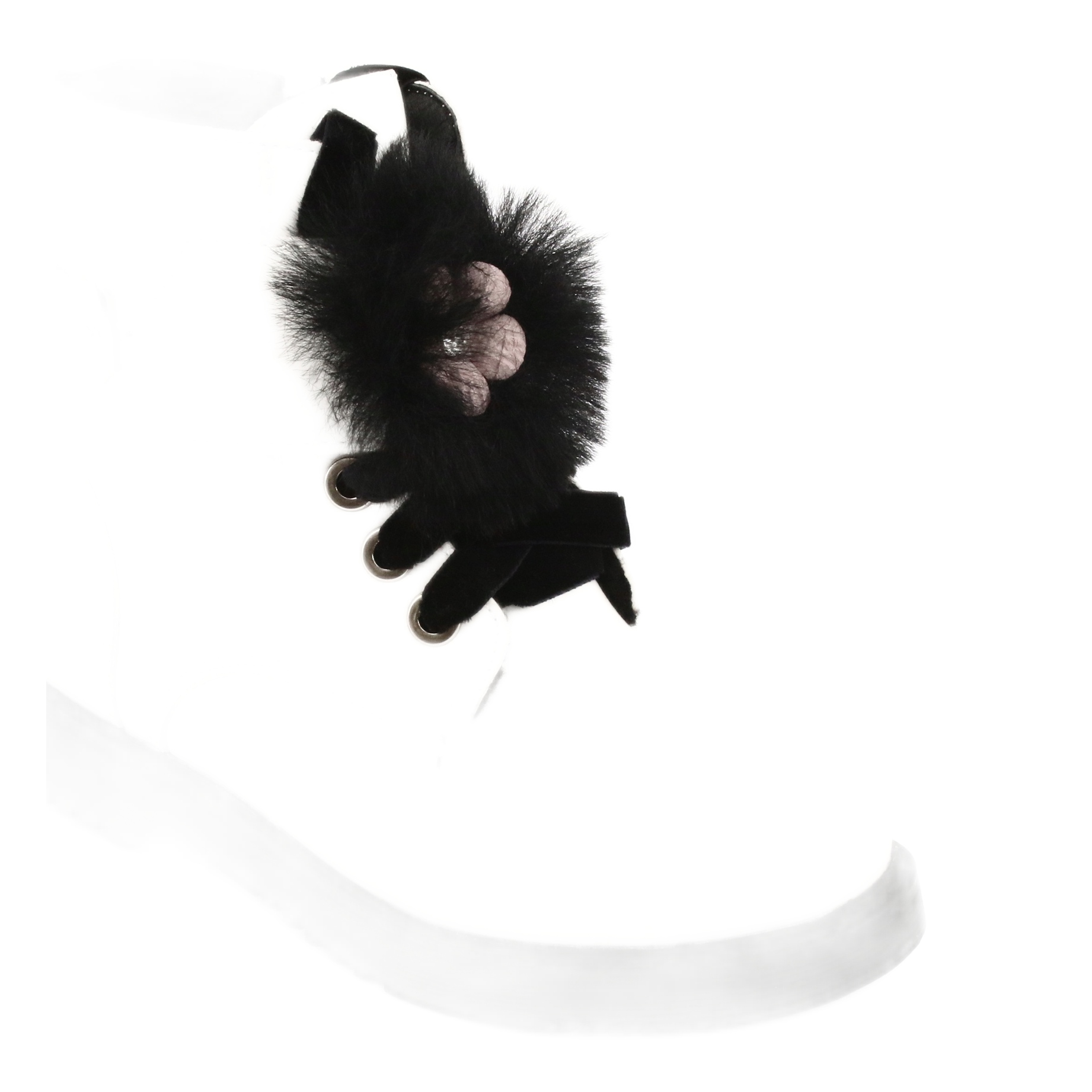 Svart päls ger en touch av lyx, och en snygg puderblomma dekorerad med paljetter, fäst vid bältet, ger det hela en flickaktig karaktär. Tack vare snörningssystemet och den intuitiva dragkedjan kommer även de yngsta modeälskare att kunna ta på sig dessa eleganta skor.