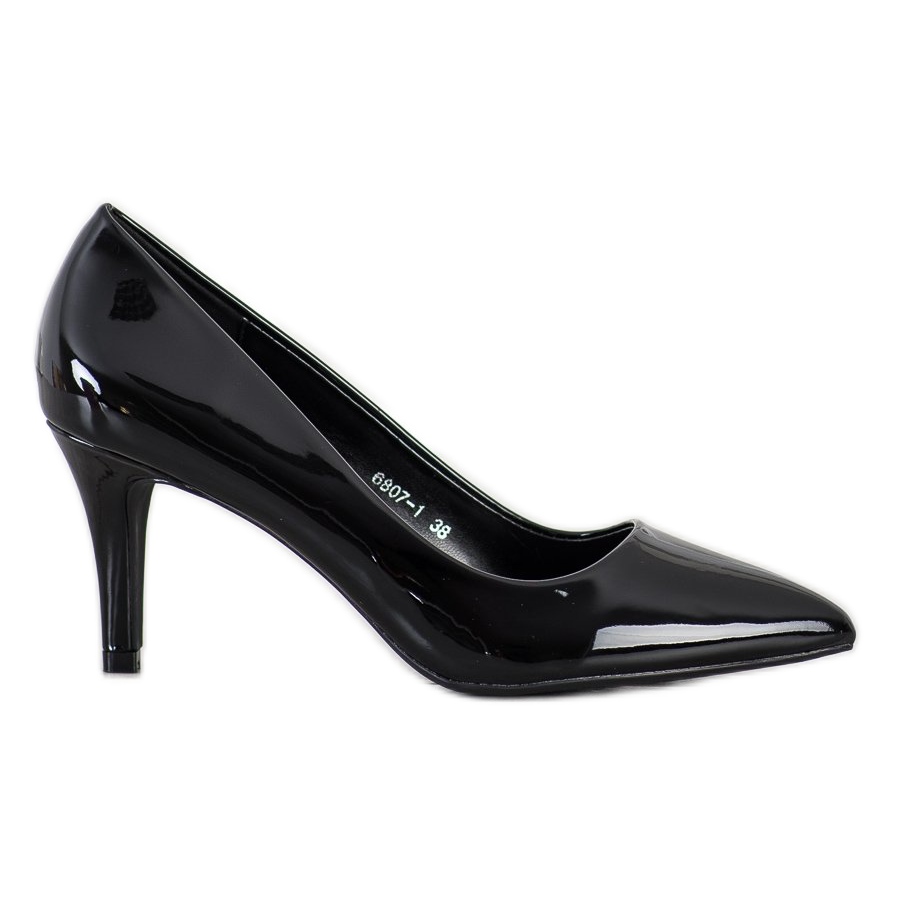 Upptäck elegans och klassisk stil med svarta Gogo högklackade skor! Dessa underbara patentpumpar är ett måste i varje damgarderob. Deras glänsande material drar till sig uppmärksamhet och ger charm till varje styling. Den spetsiga tån slimmar inte bara foten visuellt, utan ger också överdelen en modern, modern karaktär.