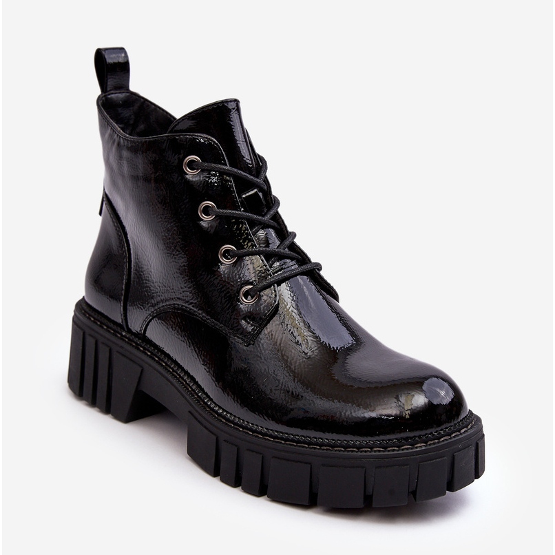 Sergio Leone Sergio Leone Lackläderisolerade snörstövlar Svart Bjorg