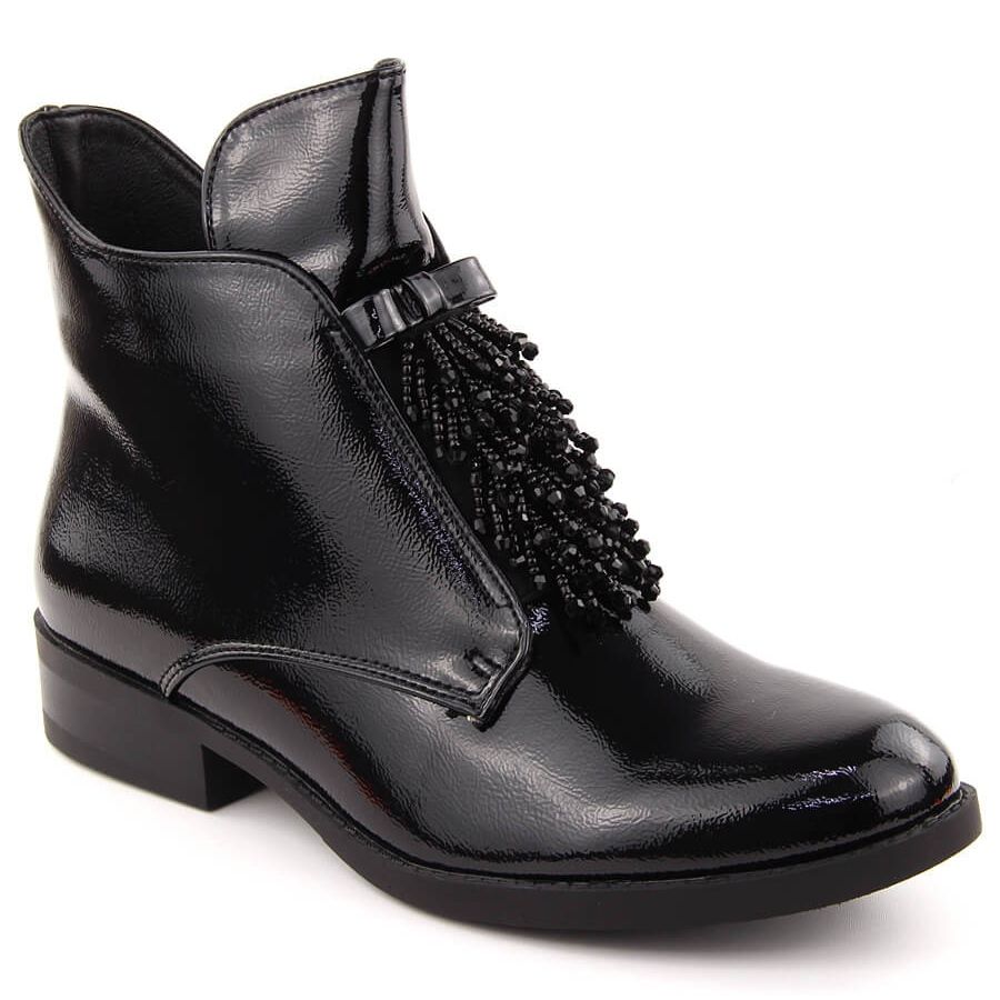 Detaljer: Lackstövlar för damer med pärlor, svart S.Barski