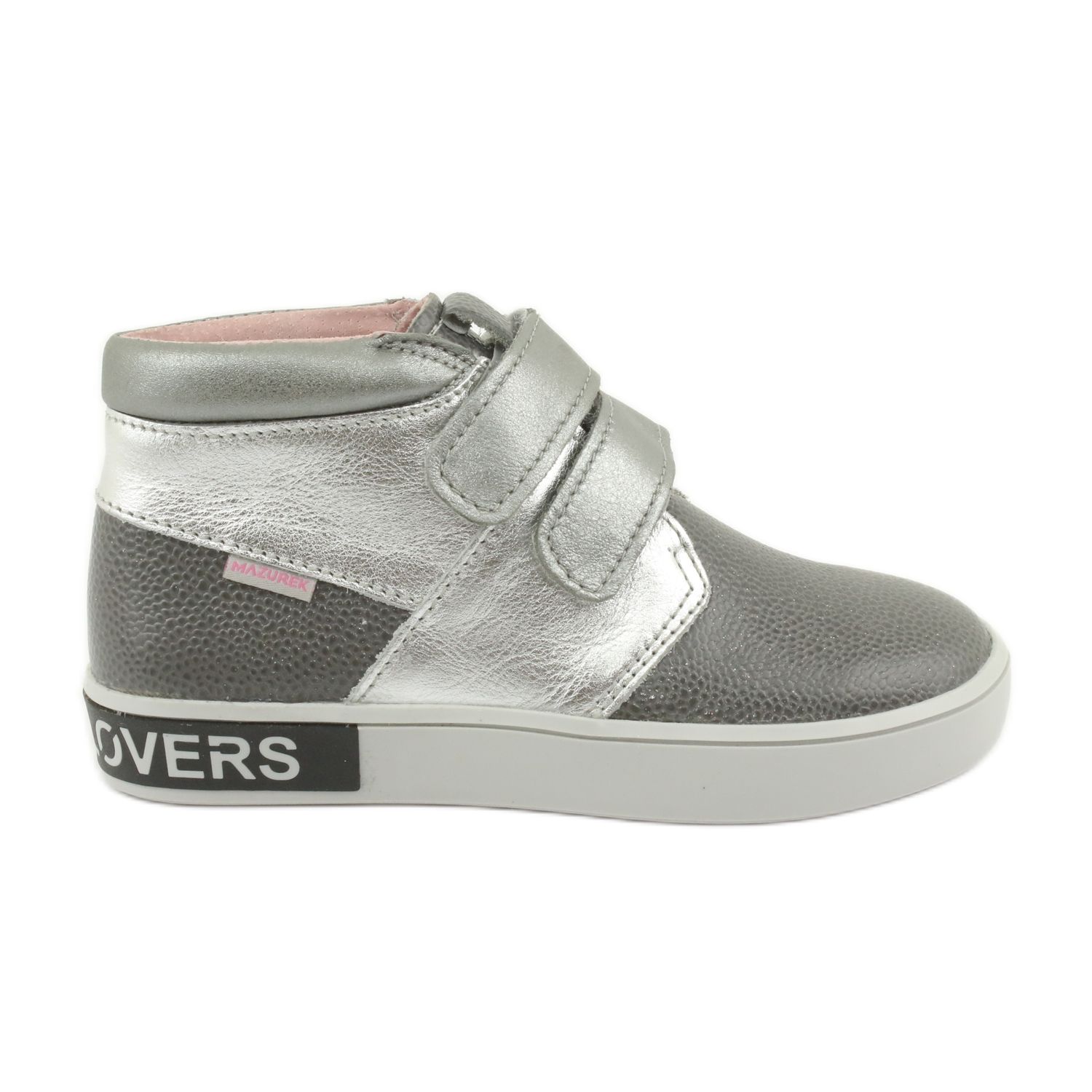 Mazurek Mazurek Läder barnskor för kardborrband 1356 grå/silver