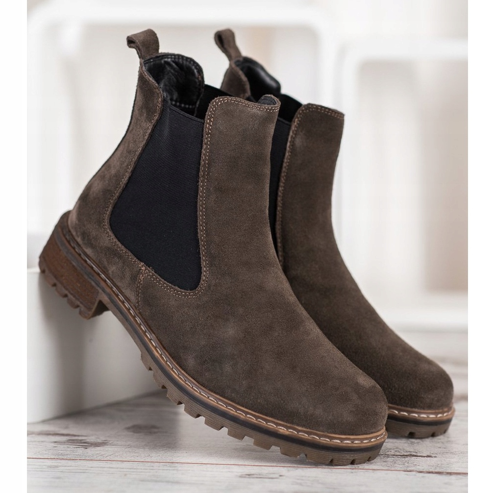 Insidan av skorna är fodrad med textilmaterial, vilket garanterar bekvämlighet och komfort att bära hela dagen. Den harmoniskt profilerade ovandelen passar perfekt på foten och höjden 12-13 cm tillför elegans. En solid, nötningsbeständig syntetisk sula garanterar hållbarhet och säkerhet under användning, och en platt 4 cm hög klack gör Chelsea-kängorna bekväma även efter långvarig promenad.