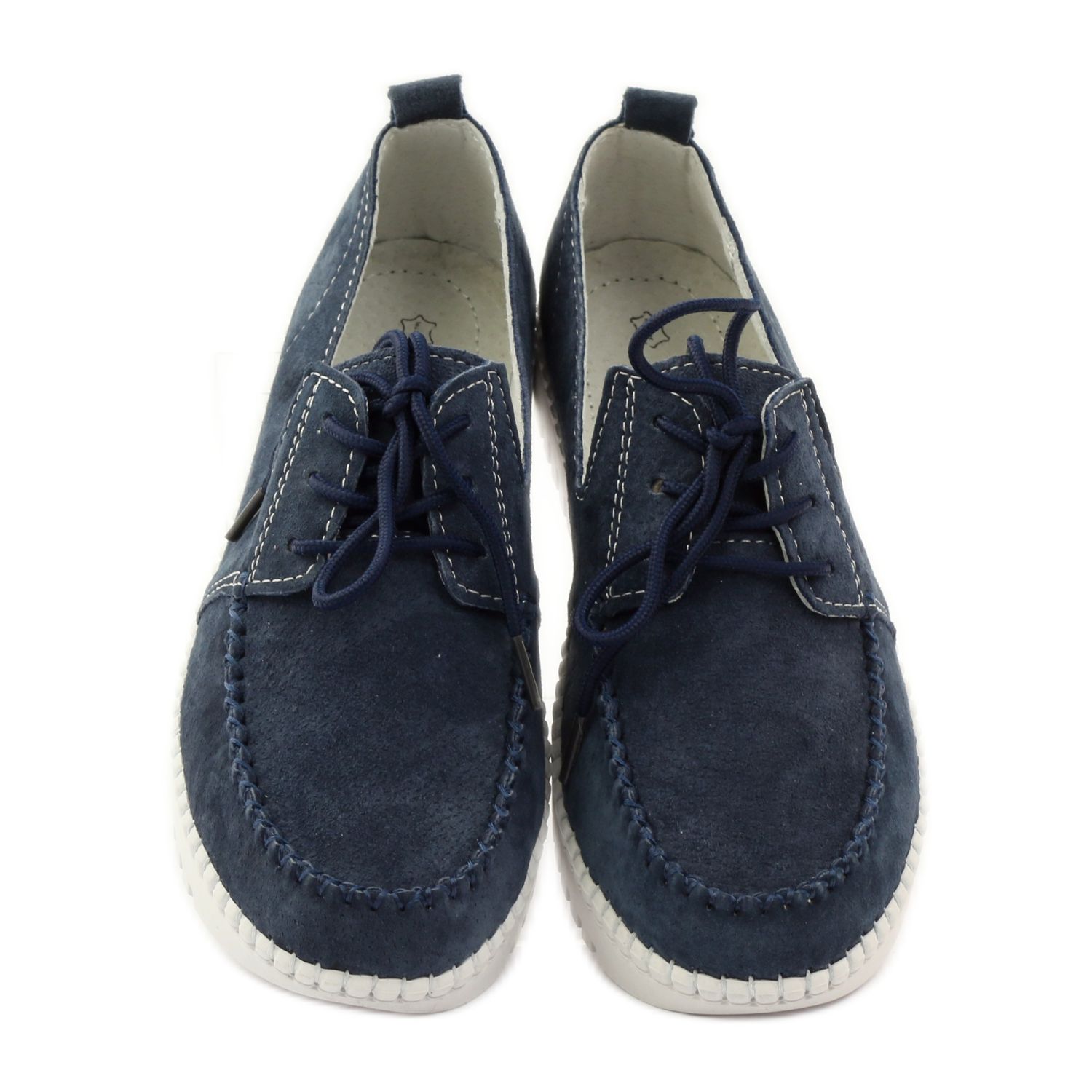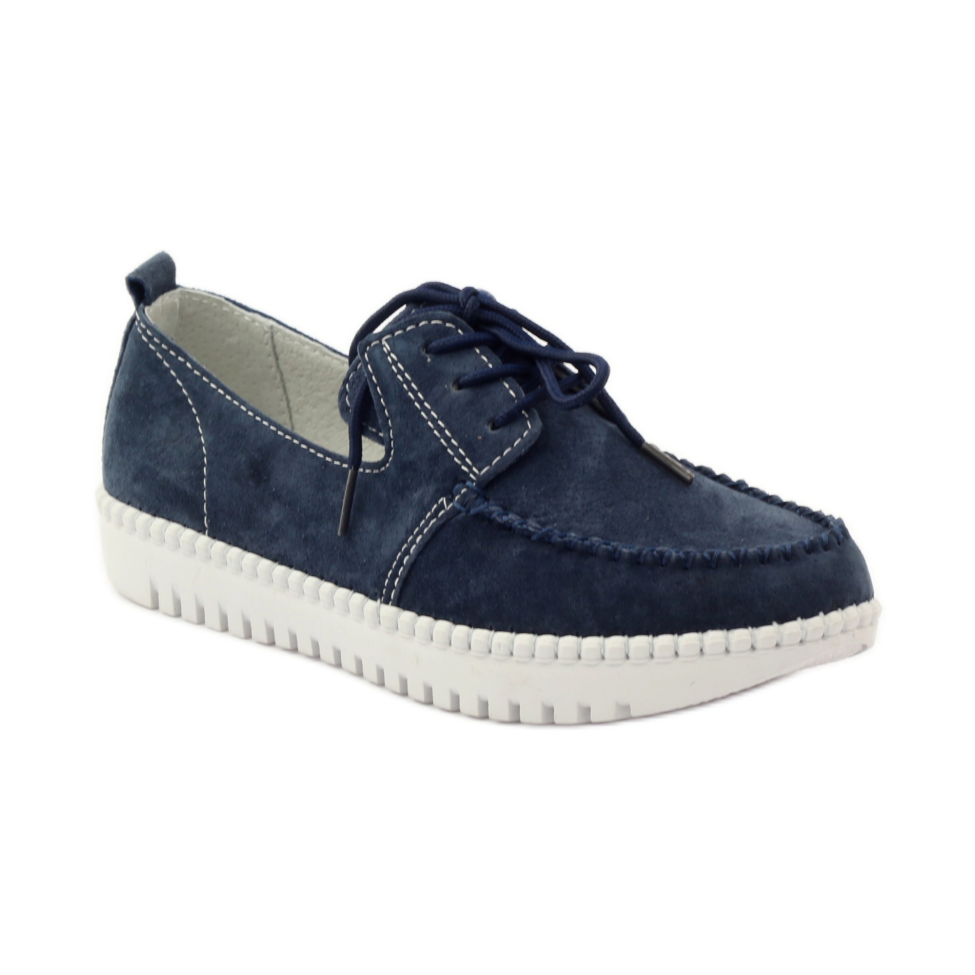 Ovansidan och insidan av dessa skor är gjorda av naturligt läder, vilket inte bara säkerställer hållbarhet, utan också utmärkt ventilation, vilket är särskilt viktigt under varmare dagar. Den marinblå färgen på skorna, kompletterad med vita sömmar, ger dem ett modernt och stilrent utseende.