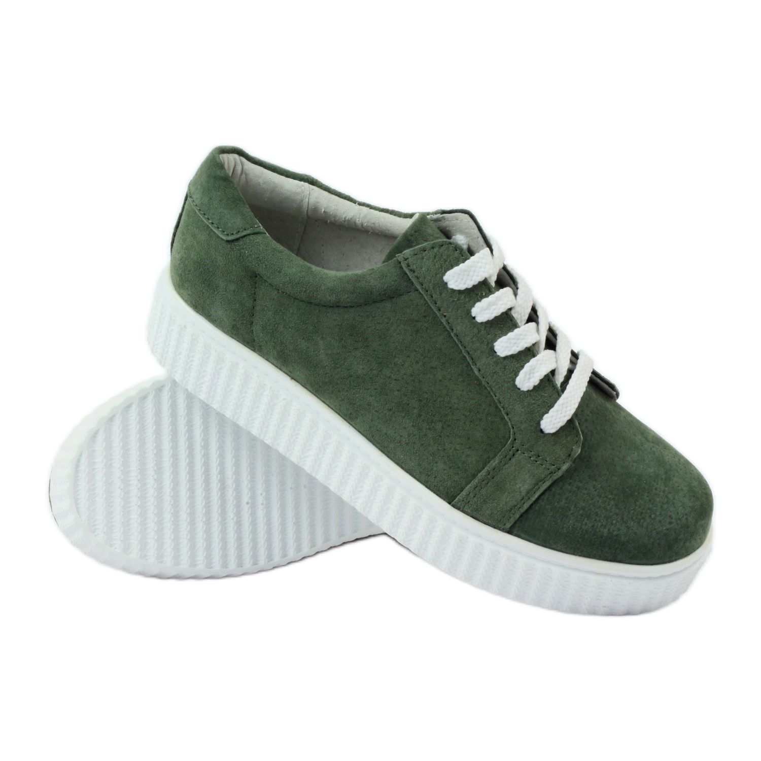 Spetsen gör att dessa rankor anpassar sig perfekt till olika typer av fötter, vilket gör dem till ett universellt val. Sätt på en tjockare, vit, platt sula med en höjd av 3,5 cm, de erbjuder stabilitet och komfort under långa promenader. Innersulan i naturläder är dessutom fodrad med en mjuk svamp, vilket säkerställer ännu större användarkomfort.