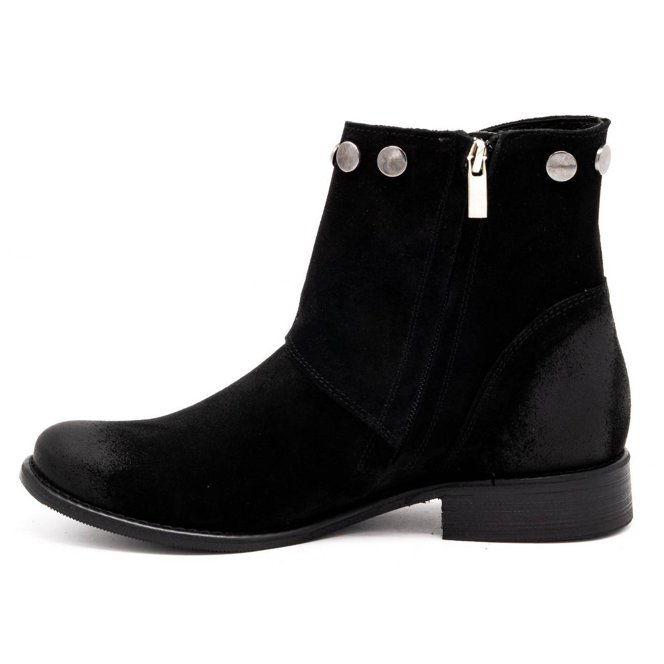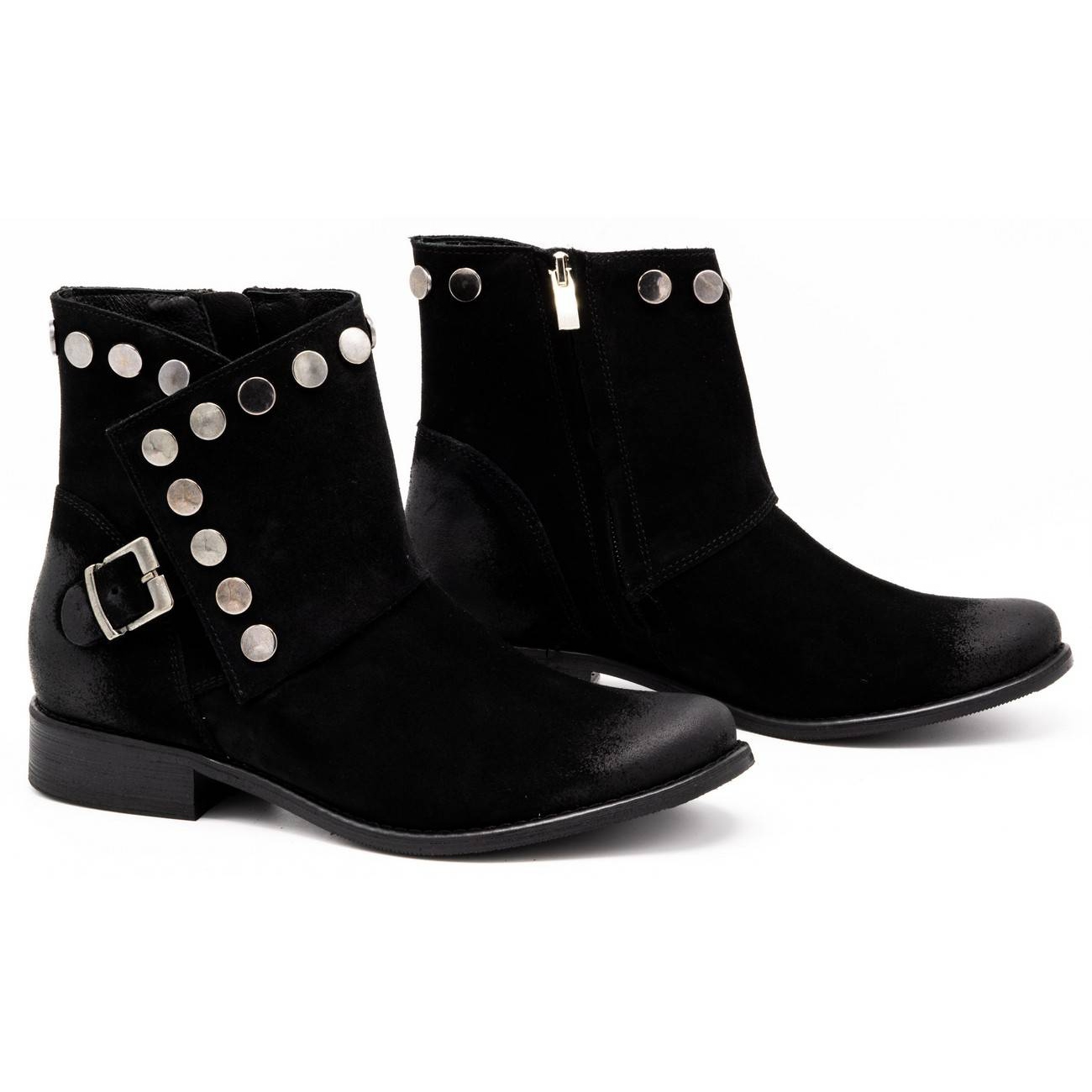 Dessa stövlar kännetecknas av ytterligare element i form av strass och nitar, som ger dem en unik karaktär och gör att varje styling får en ny dimension. Dragkedjan gör det enkelt att ta av och på, och den naturliga läderinsatsen säkerställer komfort under lång tid.