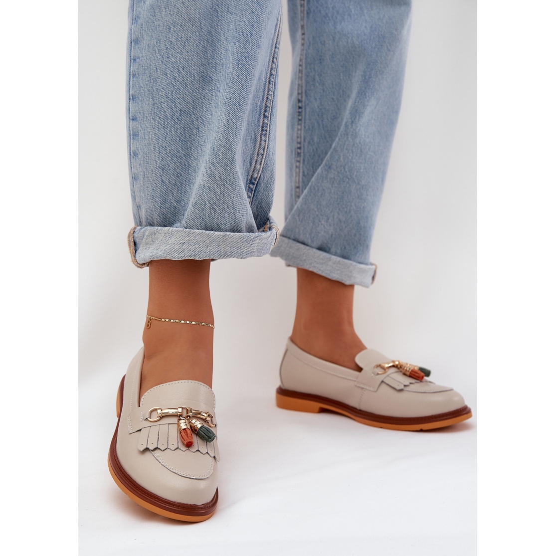 S.Barski S.Barski Läder elegant plattklackade loafers S. Barski LR51-768 Beige