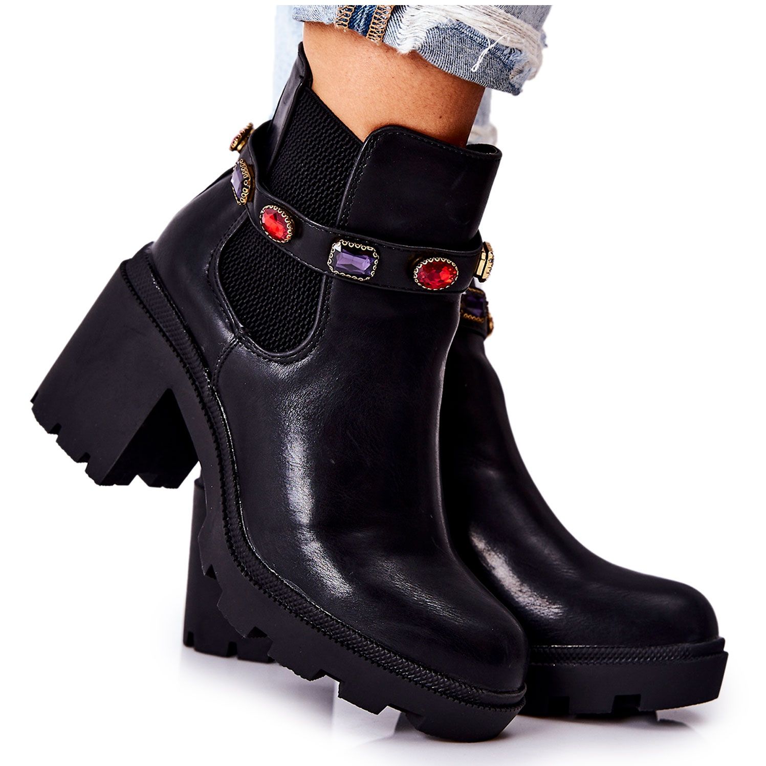 Information: PS1 Läder Kvinnors Stövlar På En Klack Med Kristaller Svart Macbeth